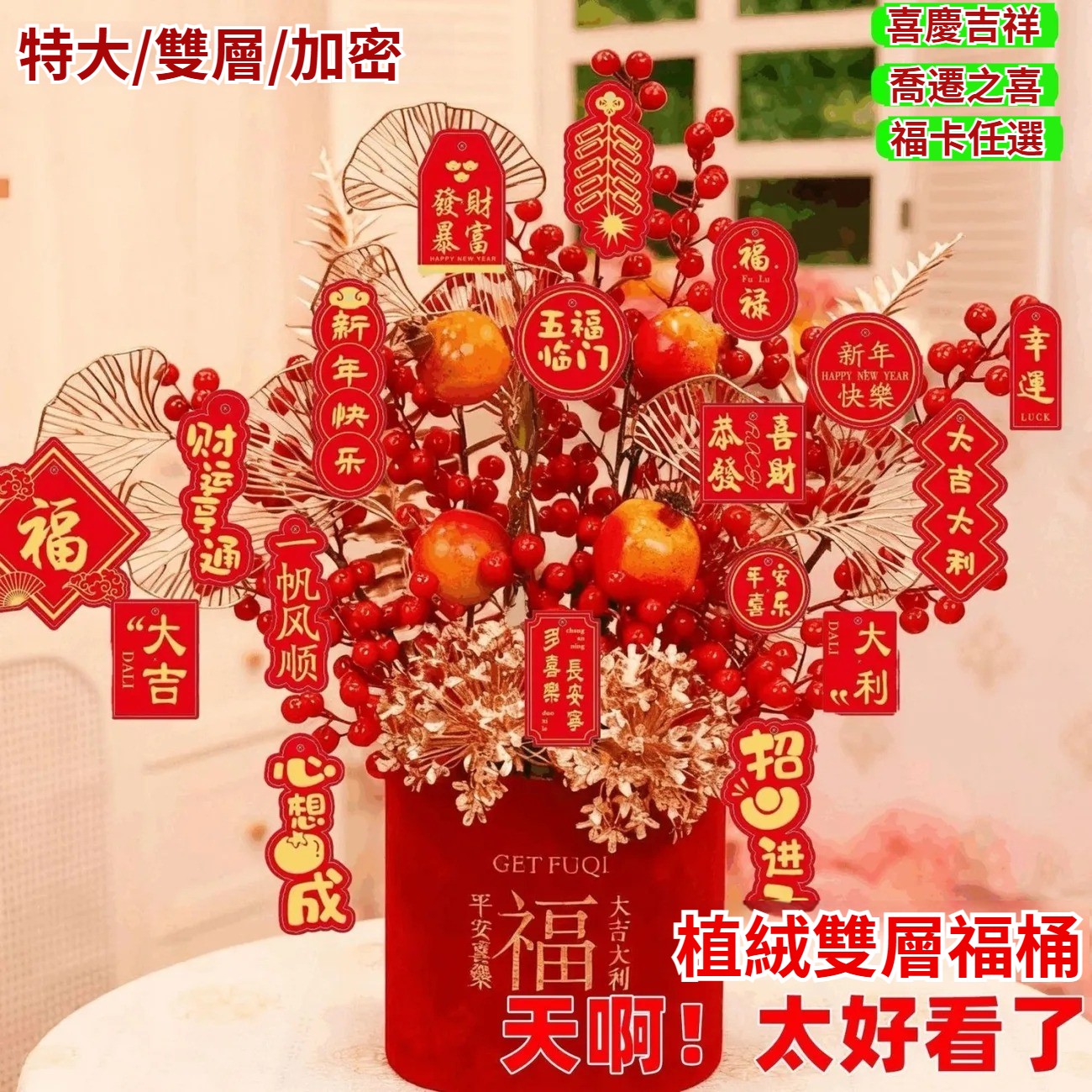 【成品裁好發貨】發財果喜慶喬遷裝飾客廳擺件仿真花新年插花福桶