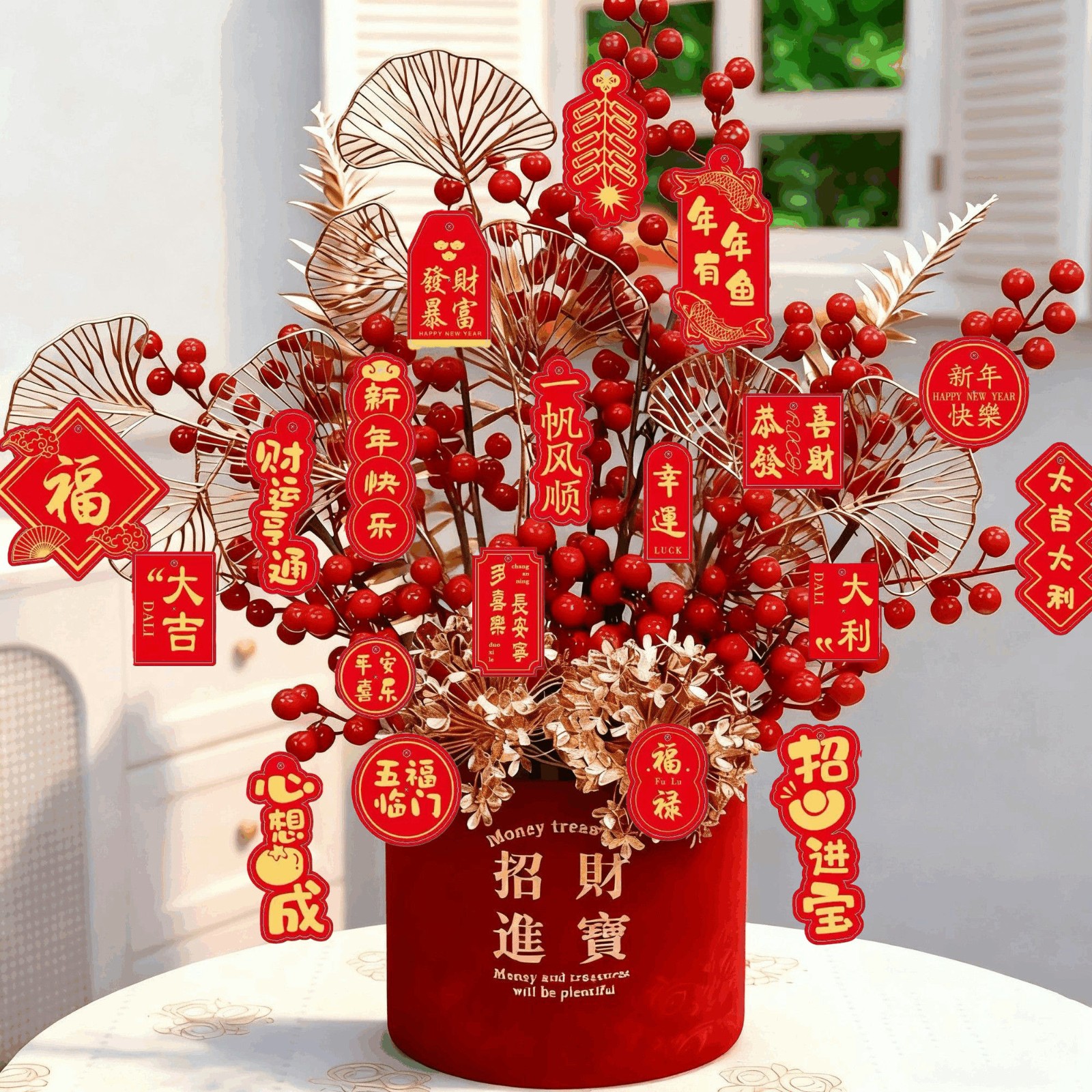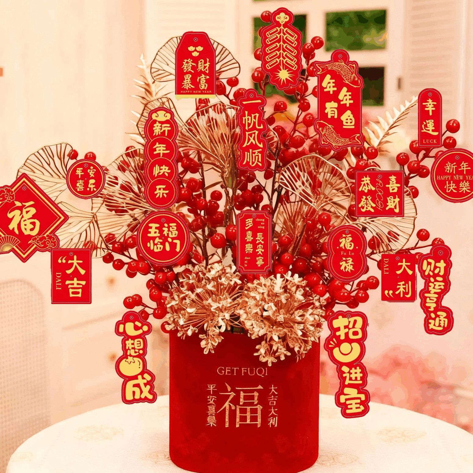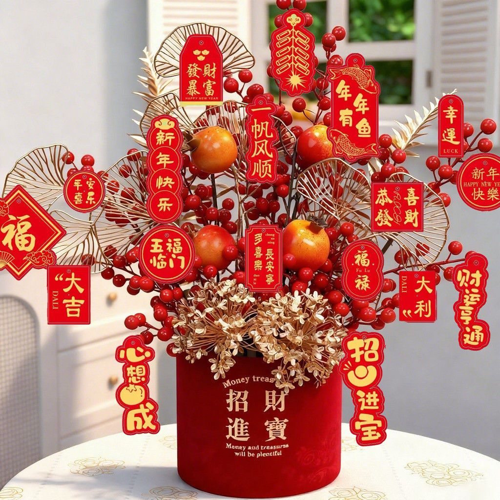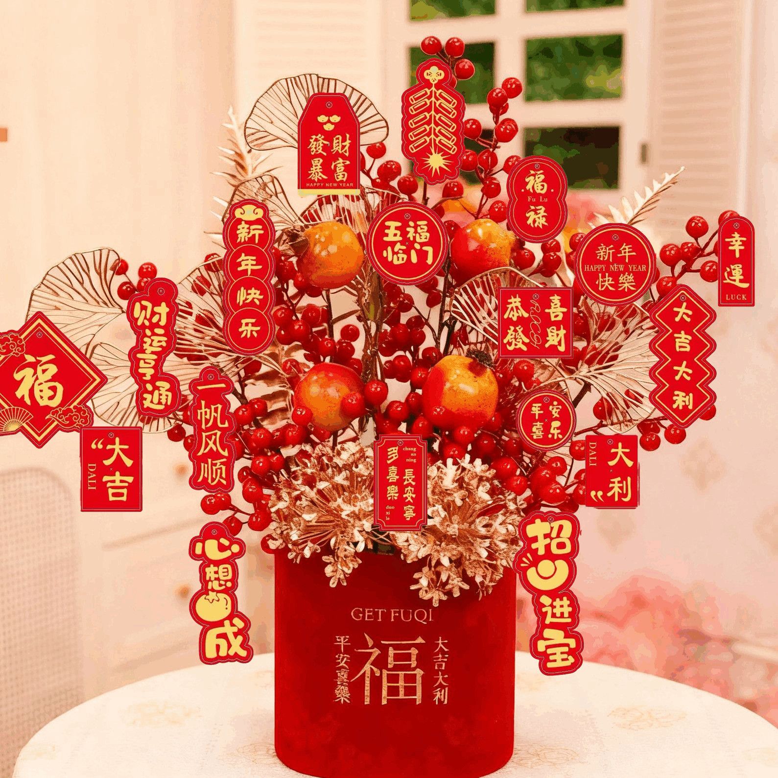 第 1 件 : 【成品裁好發貨】發財果喜慶喬遷裝飾客廳擺件仿真花新年插花福桶