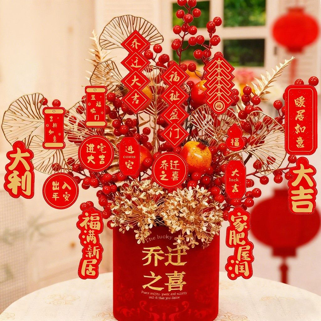 第 3 件 : 【成品裁好發貨】發財果喜慶喬遷裝飾客廳擺件仿真花新年插花福桶