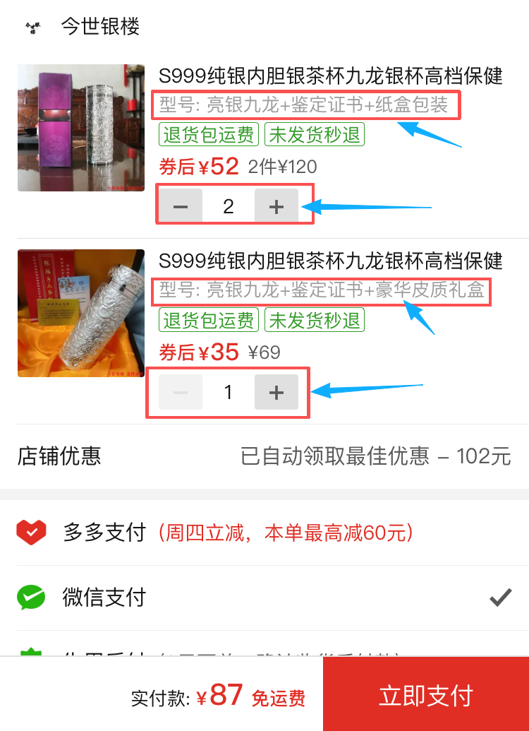 九龍銀杯3組(亮銀九龍+鑒定證書+紙盒包裝 2套+亮銀九龍+鑒定證書+豪華皮質禮盒1套),採購價:87元
