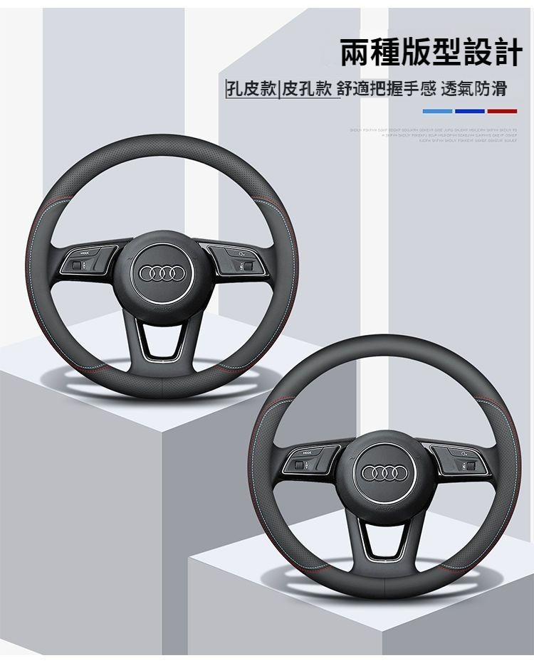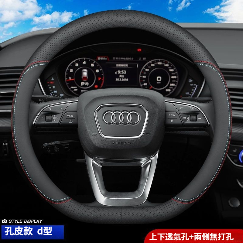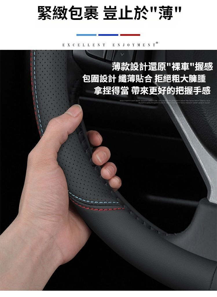 超薄雙色線款-D形-【打孔款】真皮方向盤套
