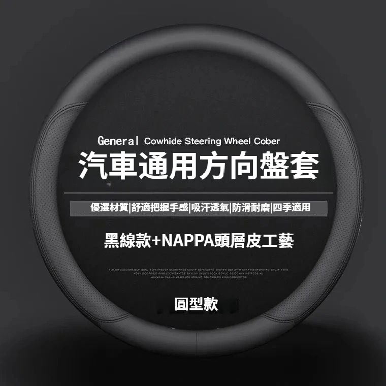 超薄納帕黑-圓形-【全皮款】真皮方向盤套
