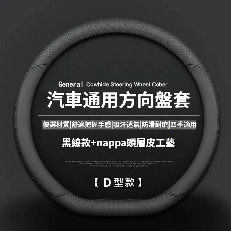超薄納帕黑-D形-【全皮款】真皮方向盤套