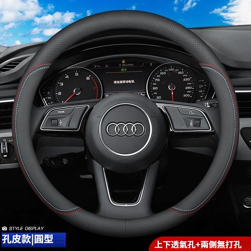 超薄雙色線款-圓形-【打孔款】真皮方向盤套