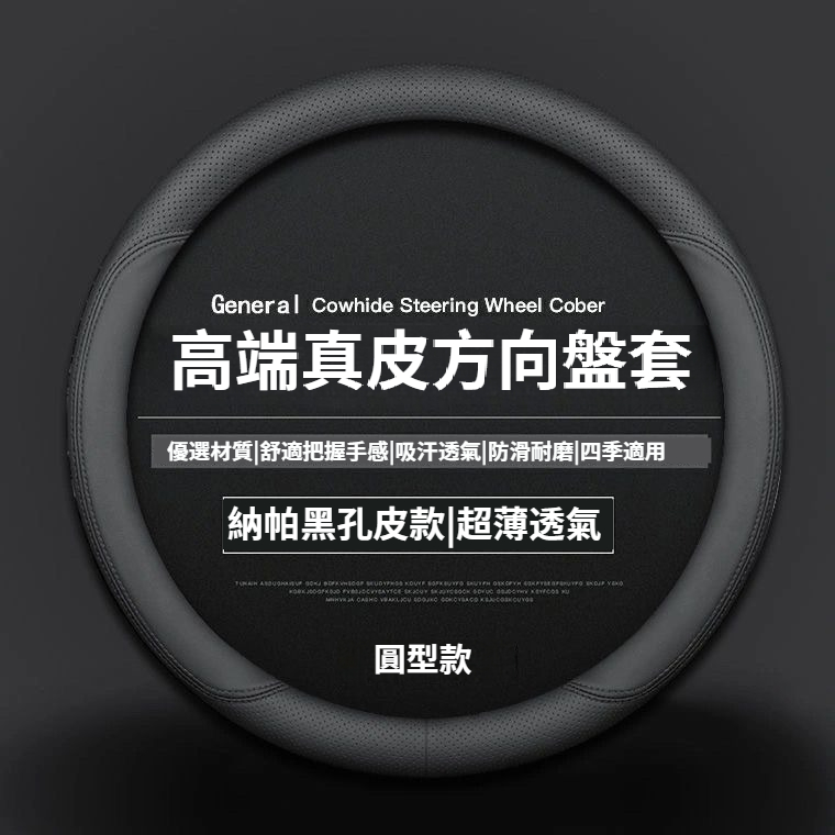 超薄納帕黑-圓形-【打孔款】真皮方向盤套