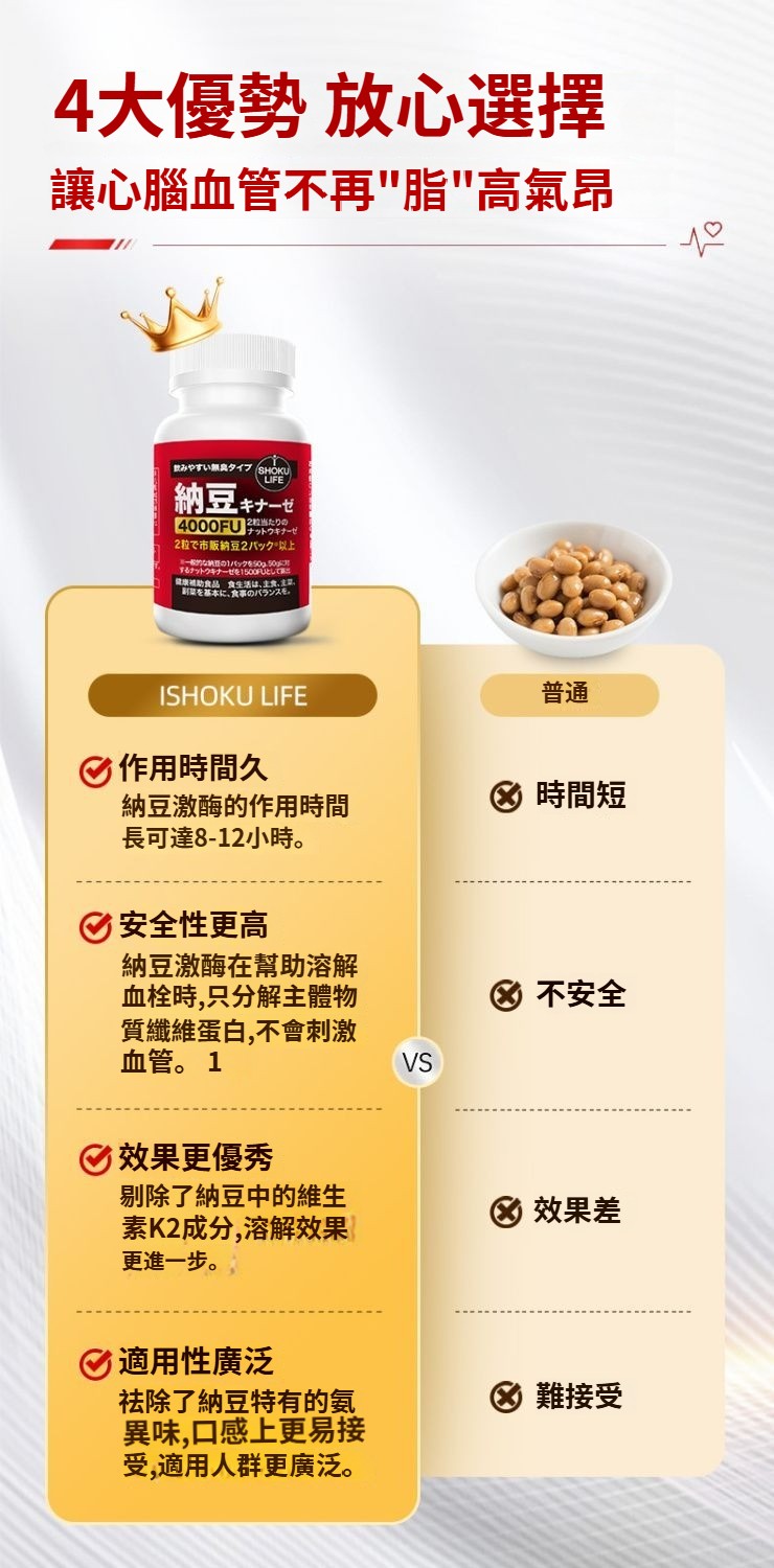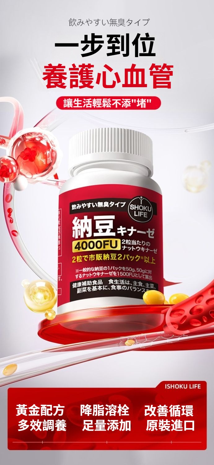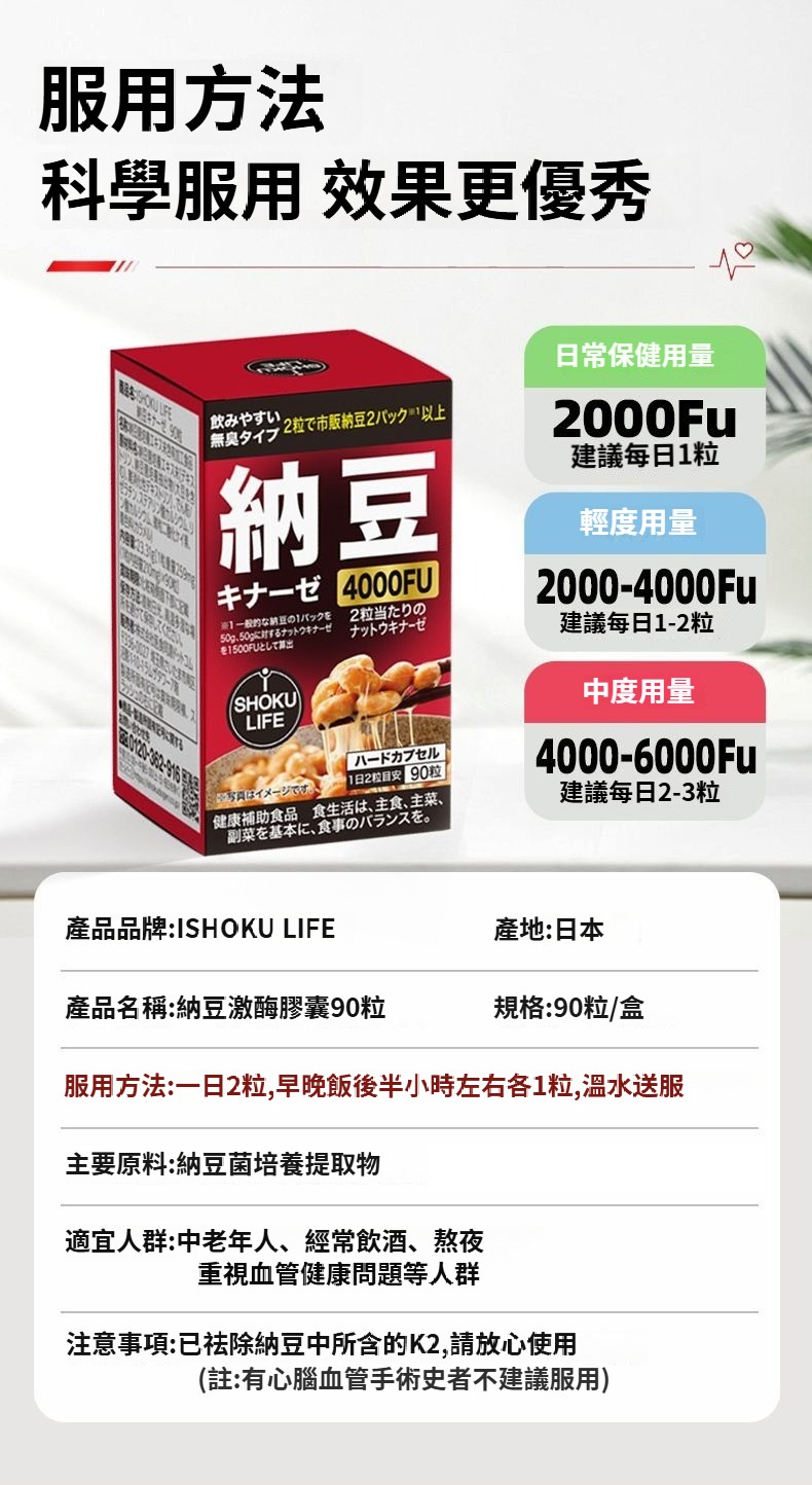 ISHOKULIFE納豆激酶90粒心血管飲食營養補充保健膠囊納豆菌心腦康