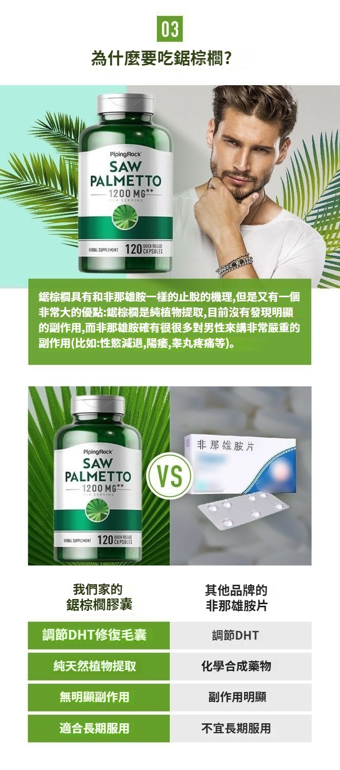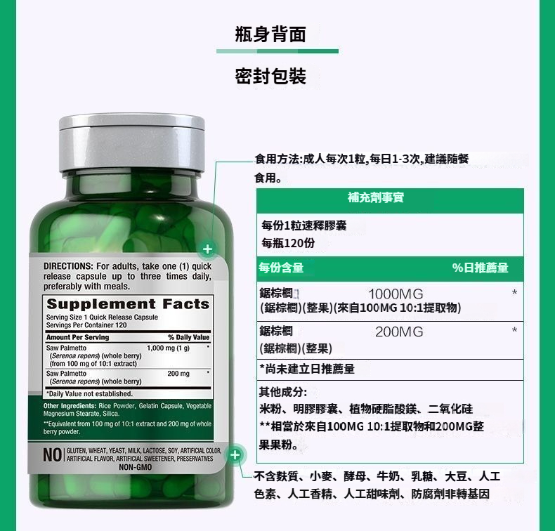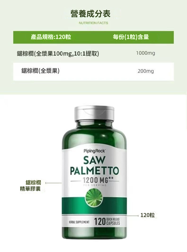 樸諾鋸棕櫚美國進口高含量1200mg直達腺體鋸棕櫚高純度防脫髮