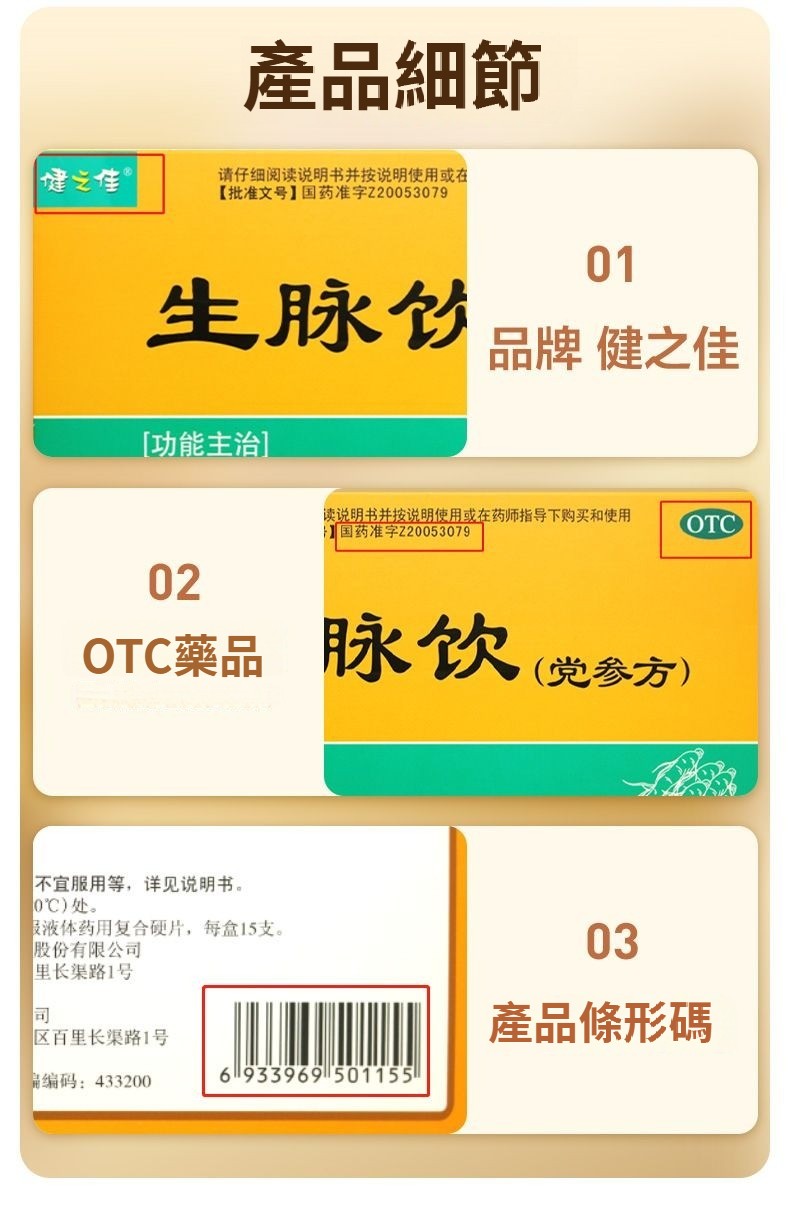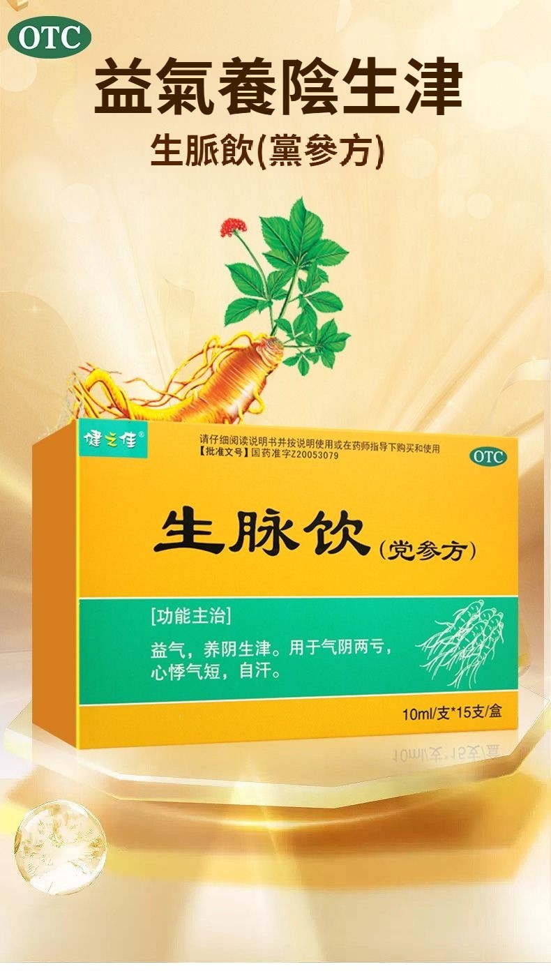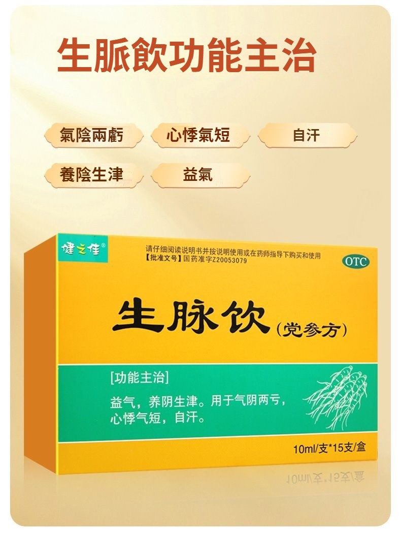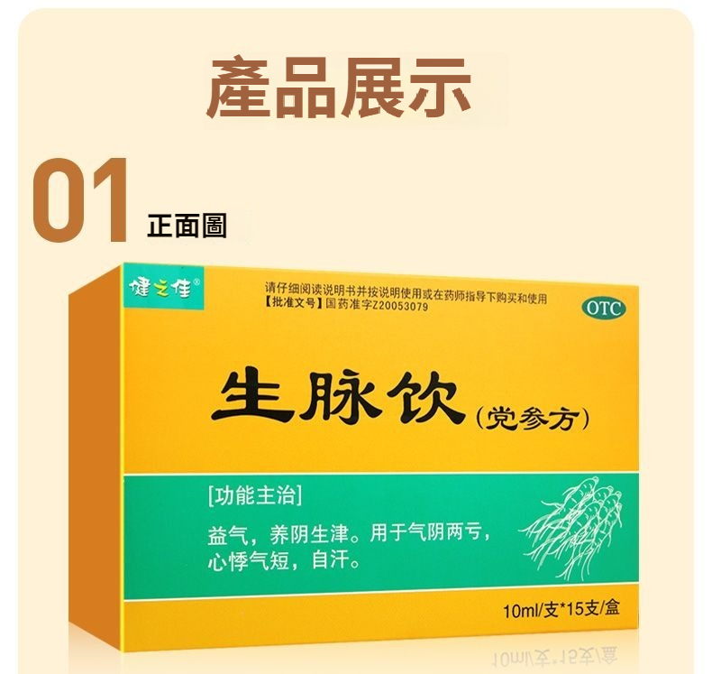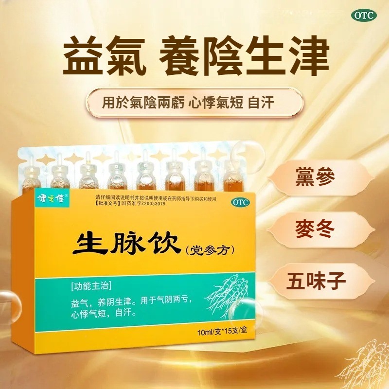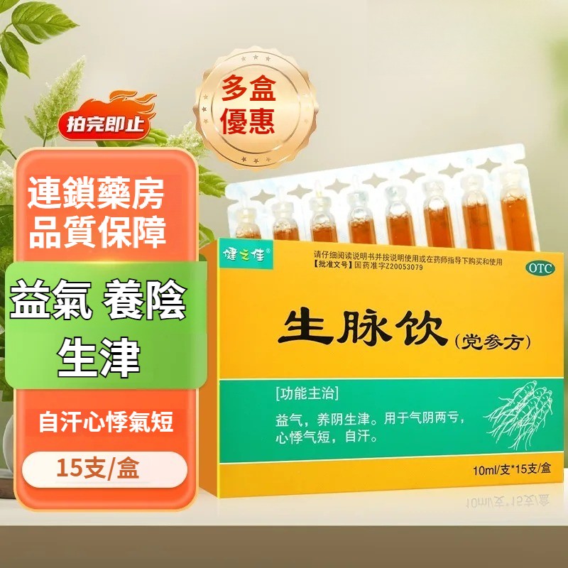 健之佳 生脈飲(黨參方) 10ml*15支/盒 益氣 養陰生津 氣陰兩虧 自汗 心悸氣短藥