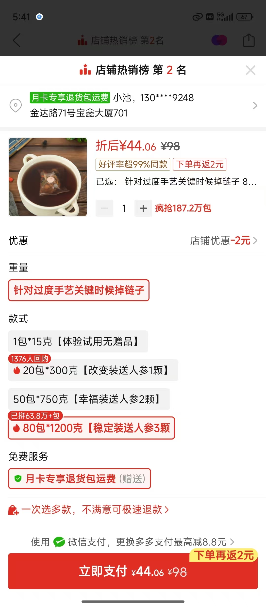 ①24味男人腎寶茶 80包 送人參3根 (44.06¥)