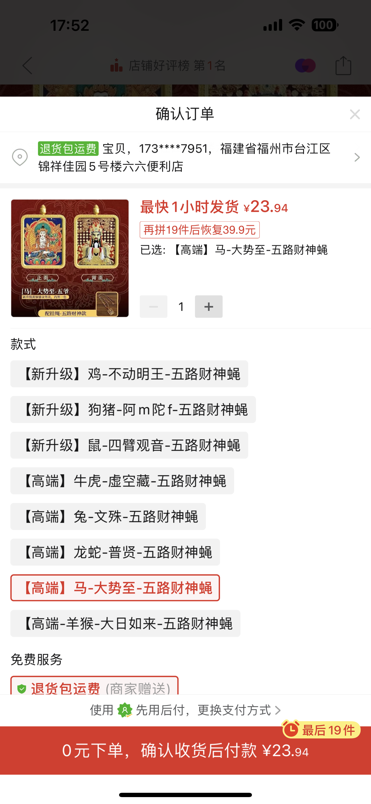 五爺守護神雙面唐卡吊墜加繩1個 馬