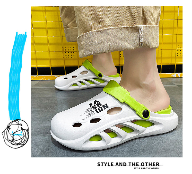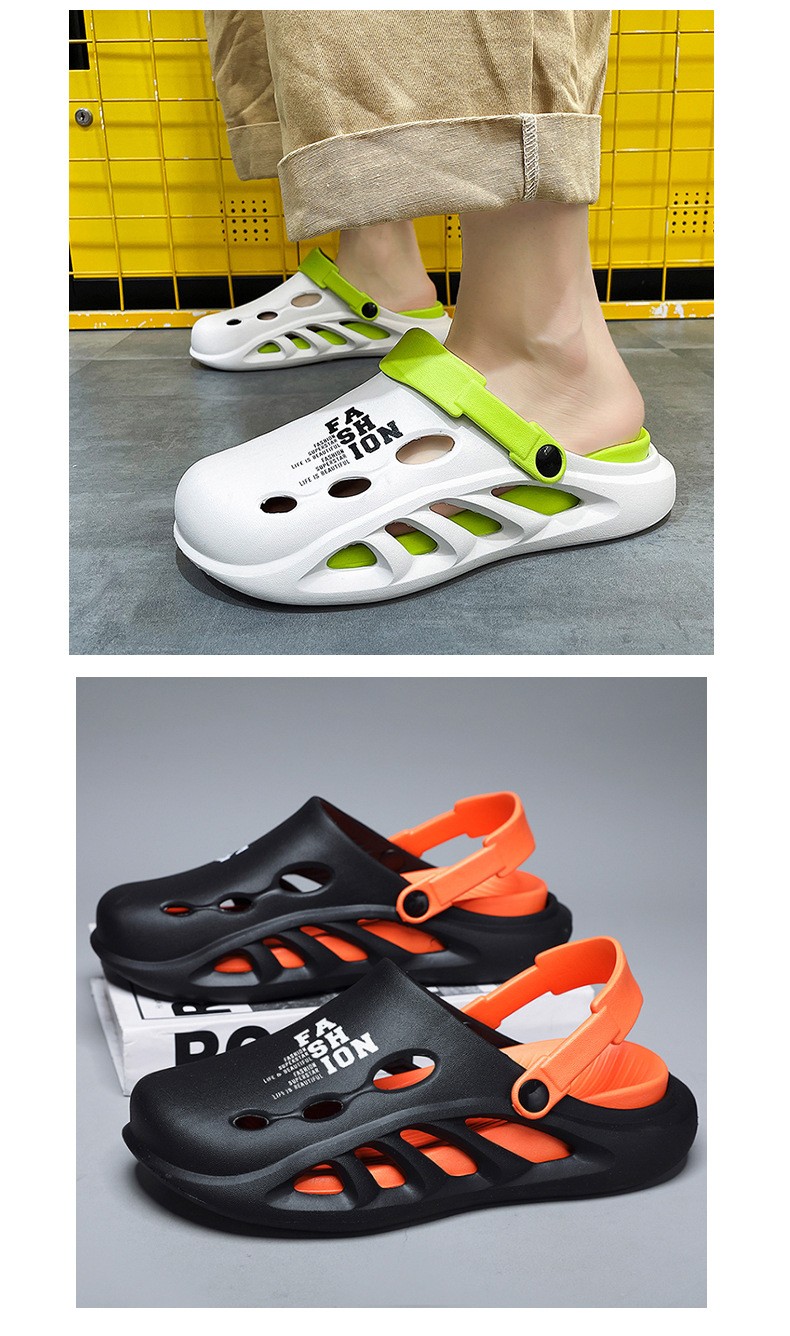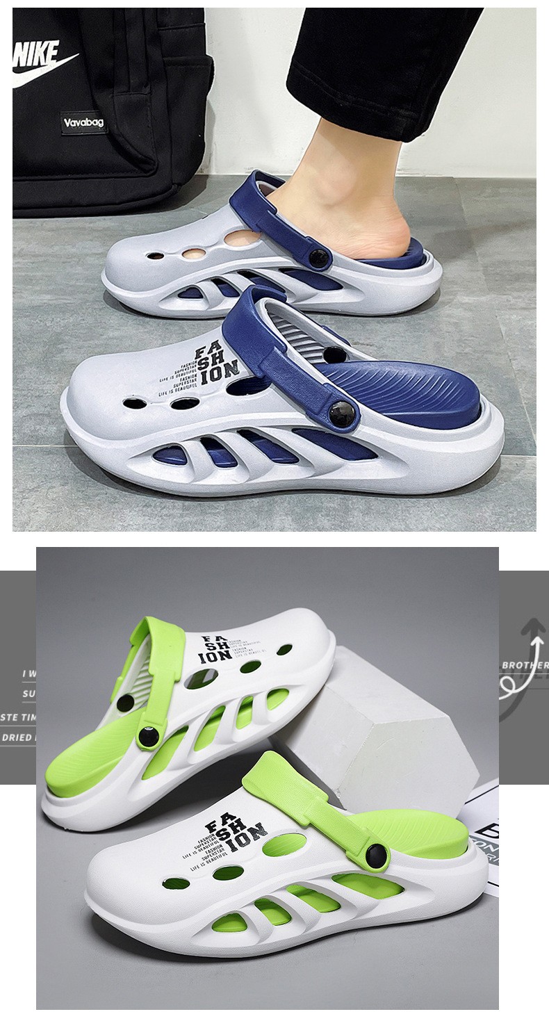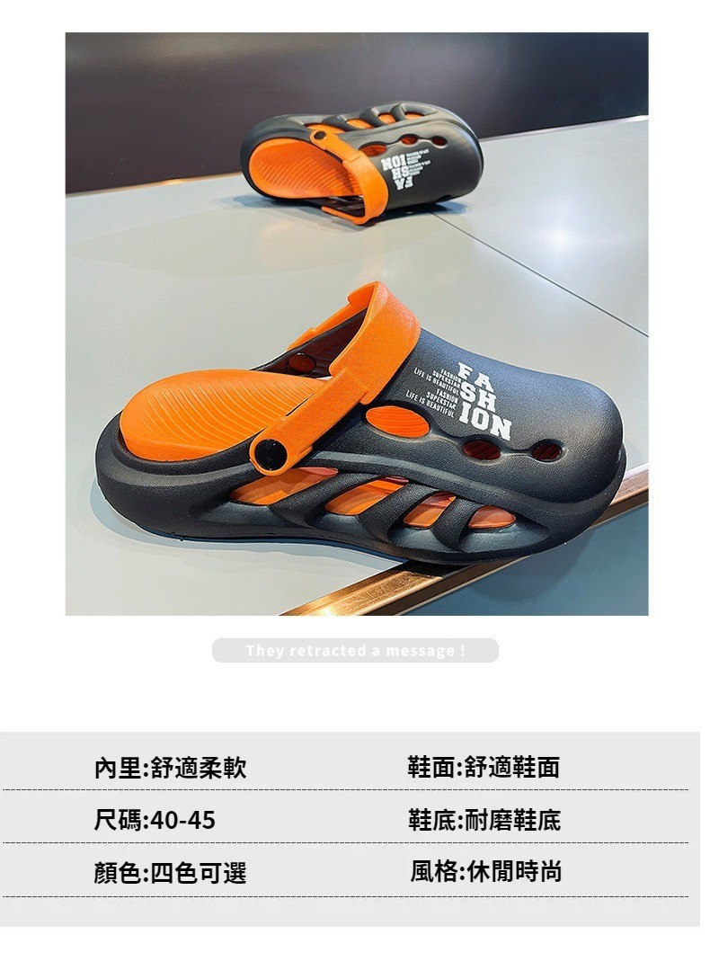 第 1 件 : 包頭拖鞋男款夏季外穿踩屎感pvc沙灘洞洞鞋男士戶外運動防滑軟底