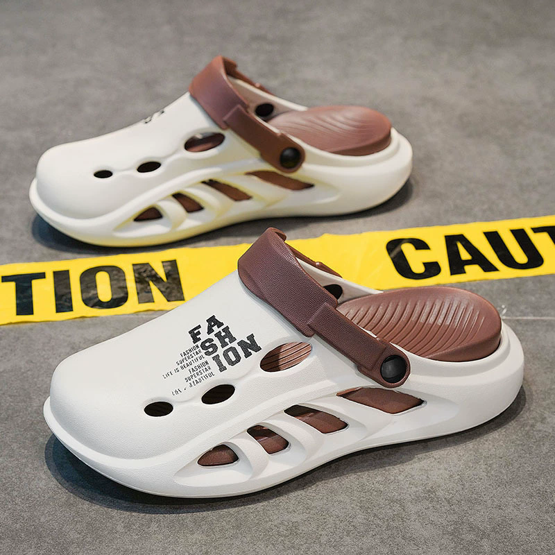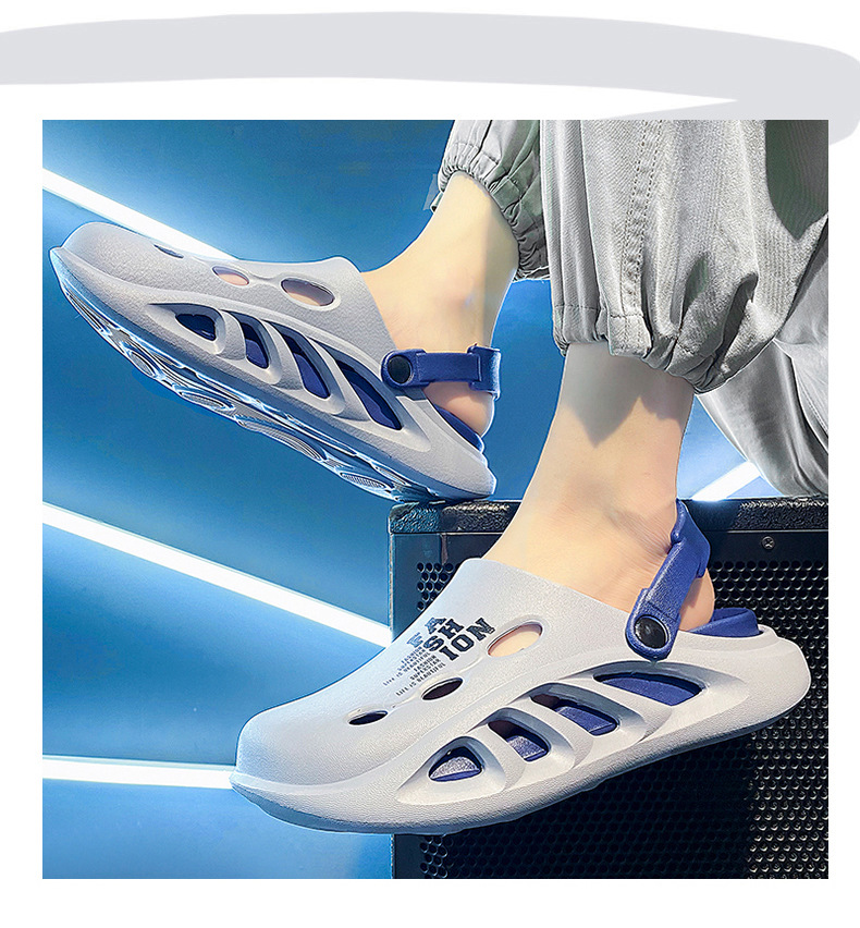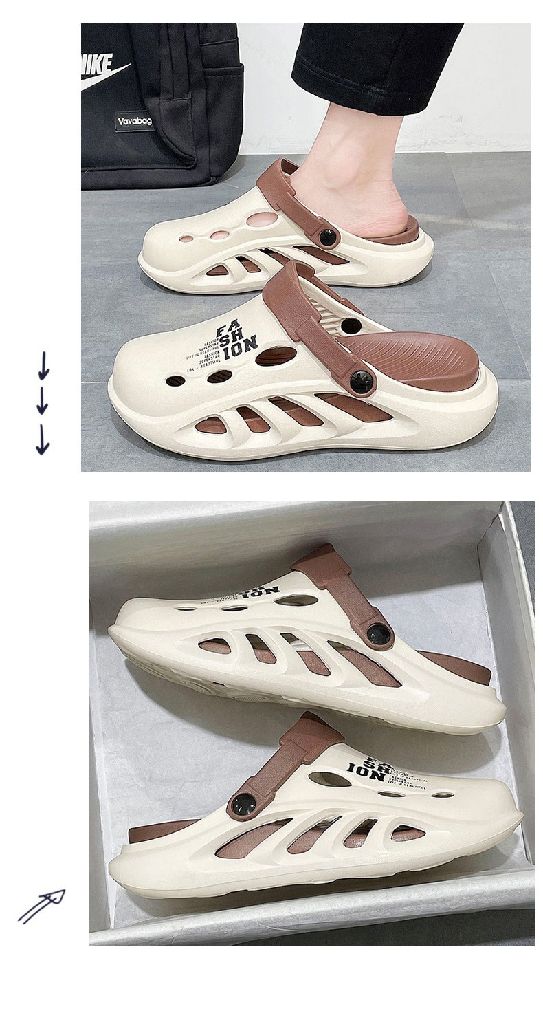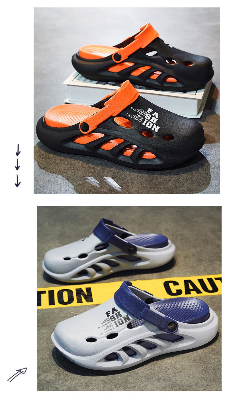 第 1 件 : 包頭拖鞋男款夏季外穿踩屎感pvc沙灘洞洞鞋男士戶外運動防滑軟底