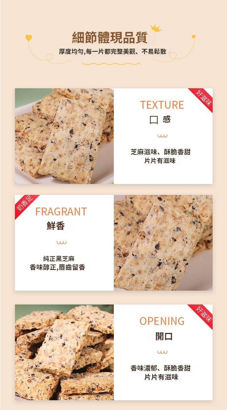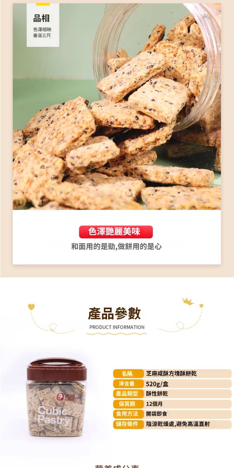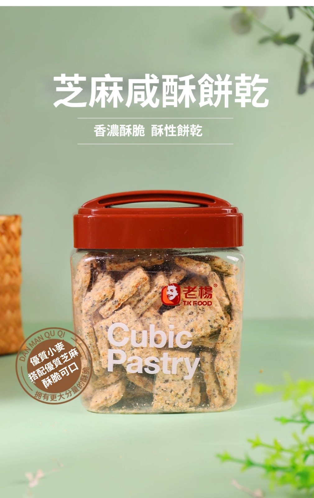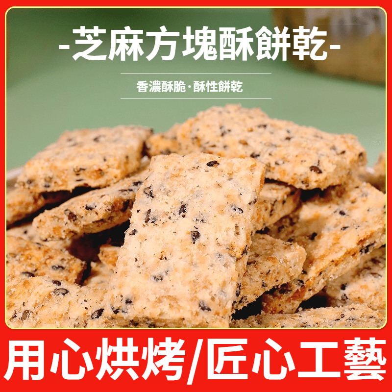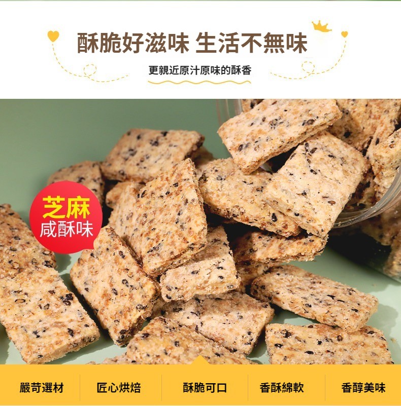 方塊芝麻咸酥餅乾辦公室休閑零食520g罐裝代餐早餐茶點食品