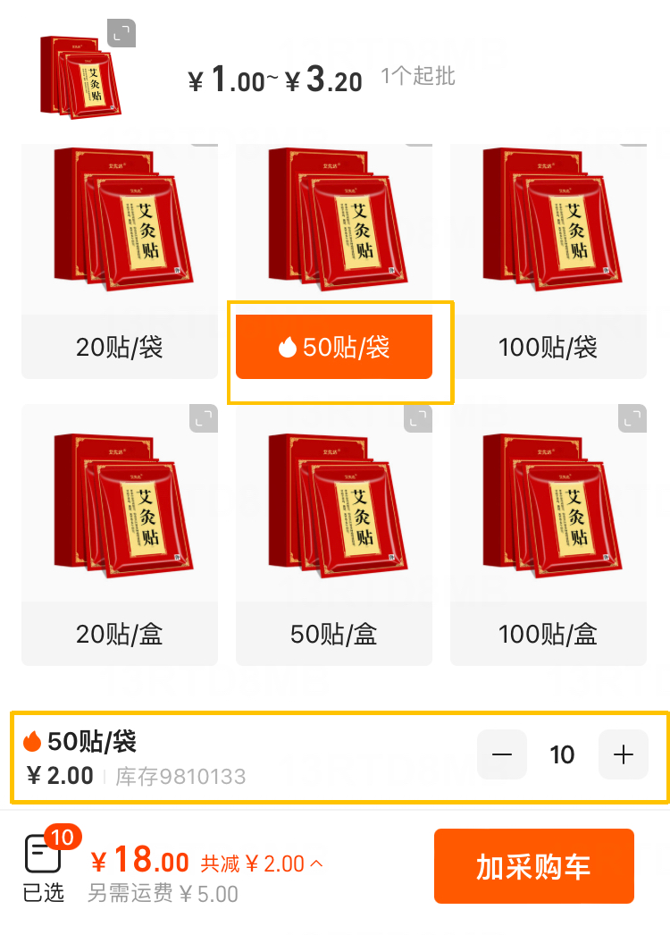 艾先達 艾灸貼10袋*(50貼/袋) ;採購價:23元