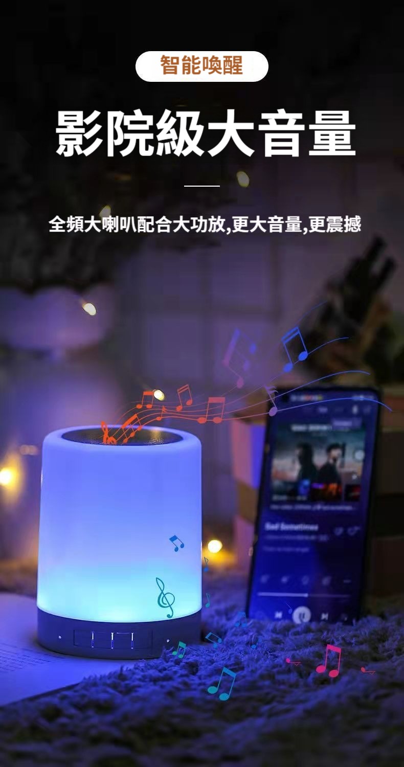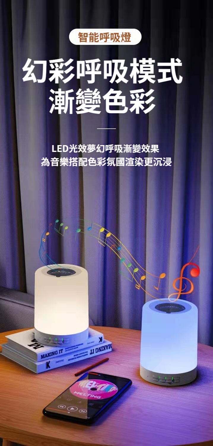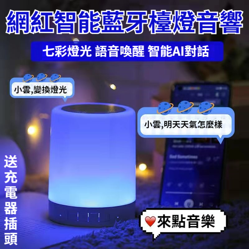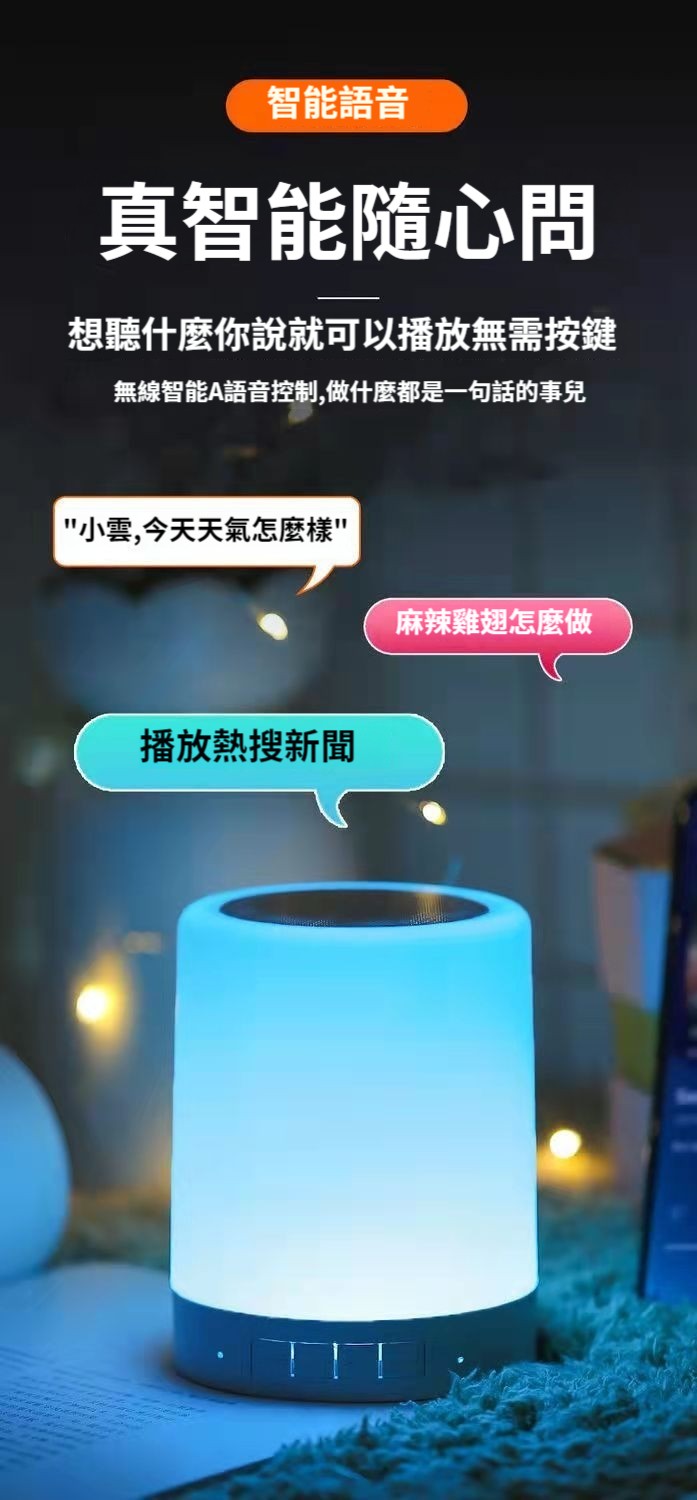 智慧Ai藍牙音響夜燈調光鬧鐘音響無線語音聲控臥室睡眠音樂小檯燈
