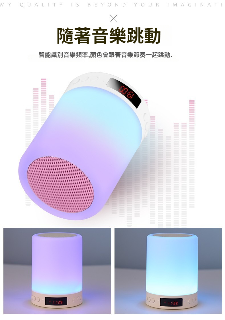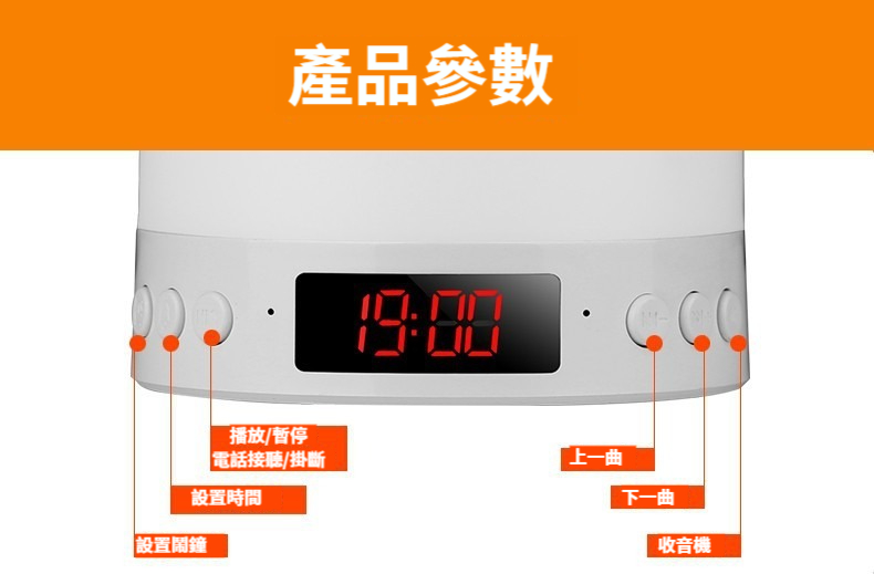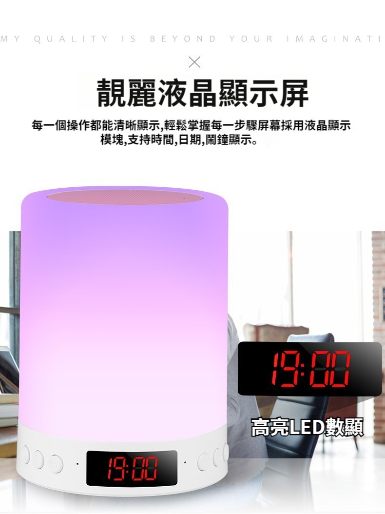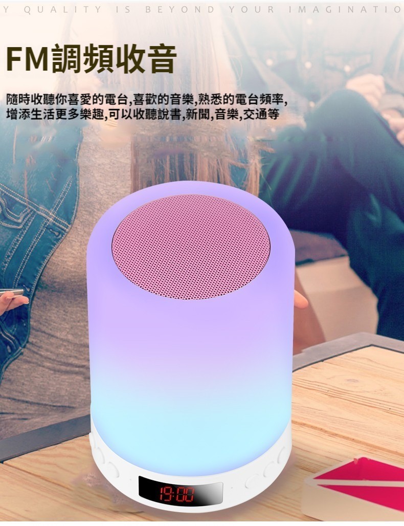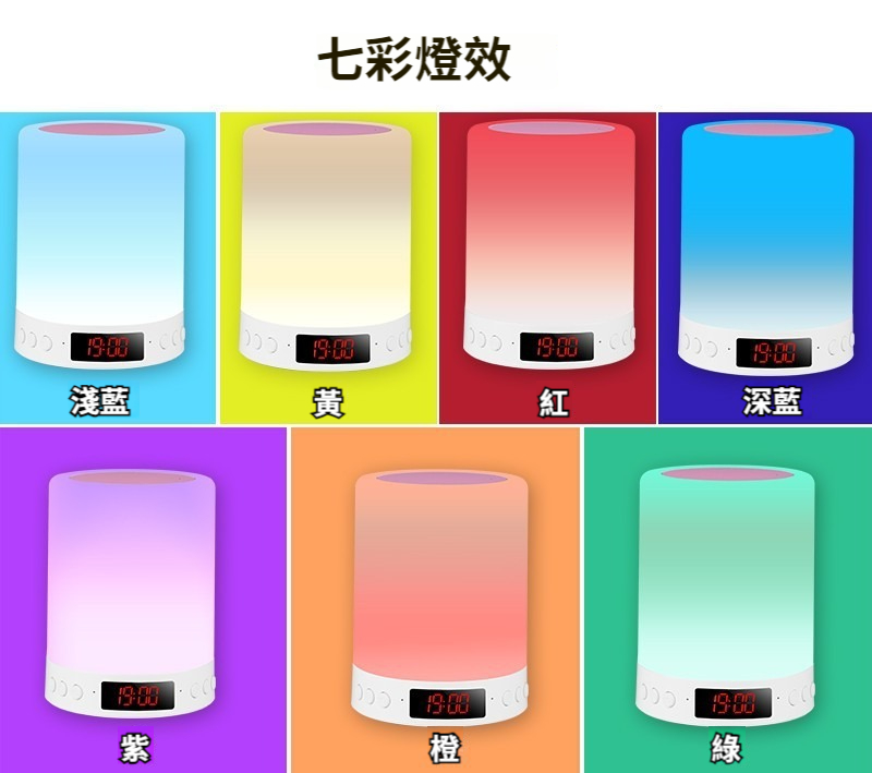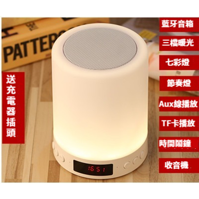 鬧鐘款 七彩燈+時間+收音機+ 充電器插頭