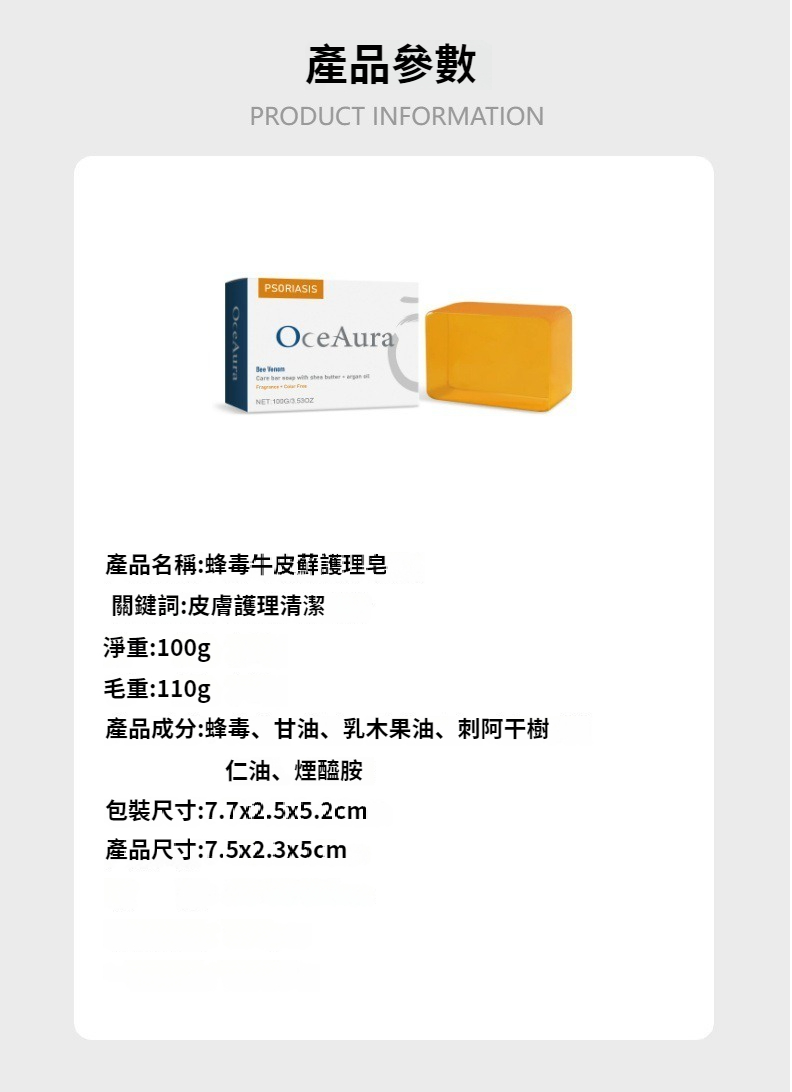 OceAura 蜂毒牛皮藻護理皂 滋潤修護身體皮膚搔癢紅腫止癢清潔皂 NT$ 998