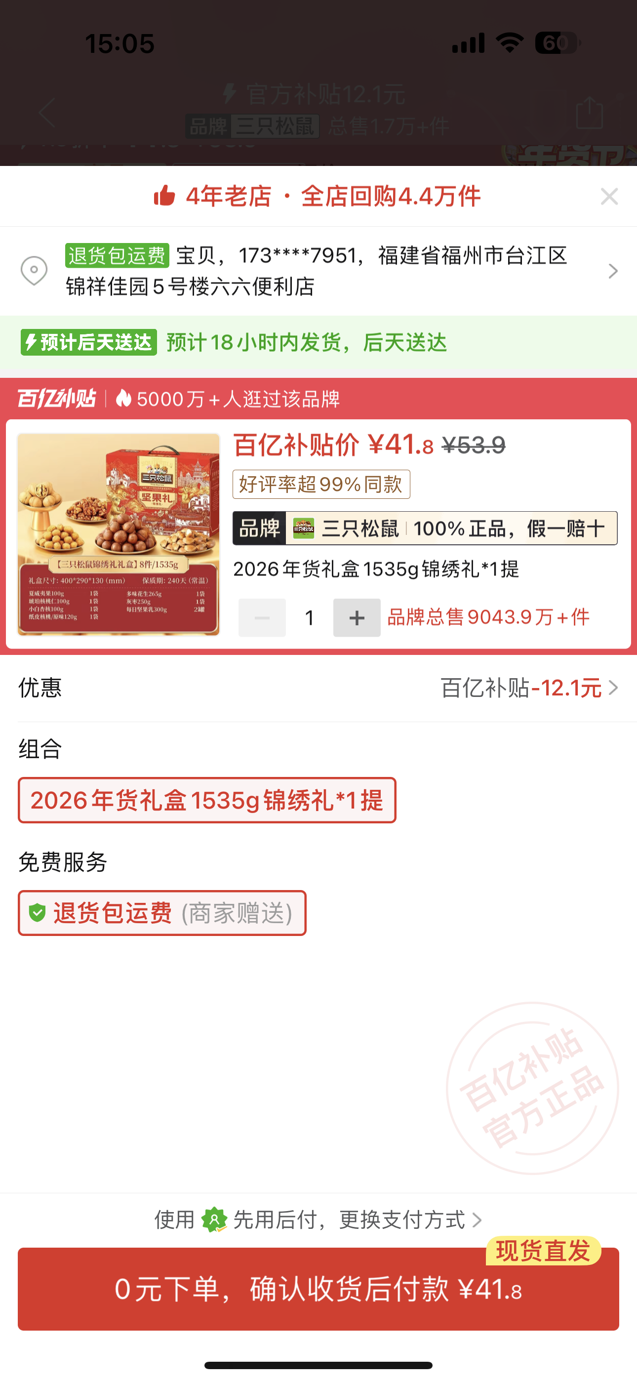 三隻松鼠堅果禮盒一份
