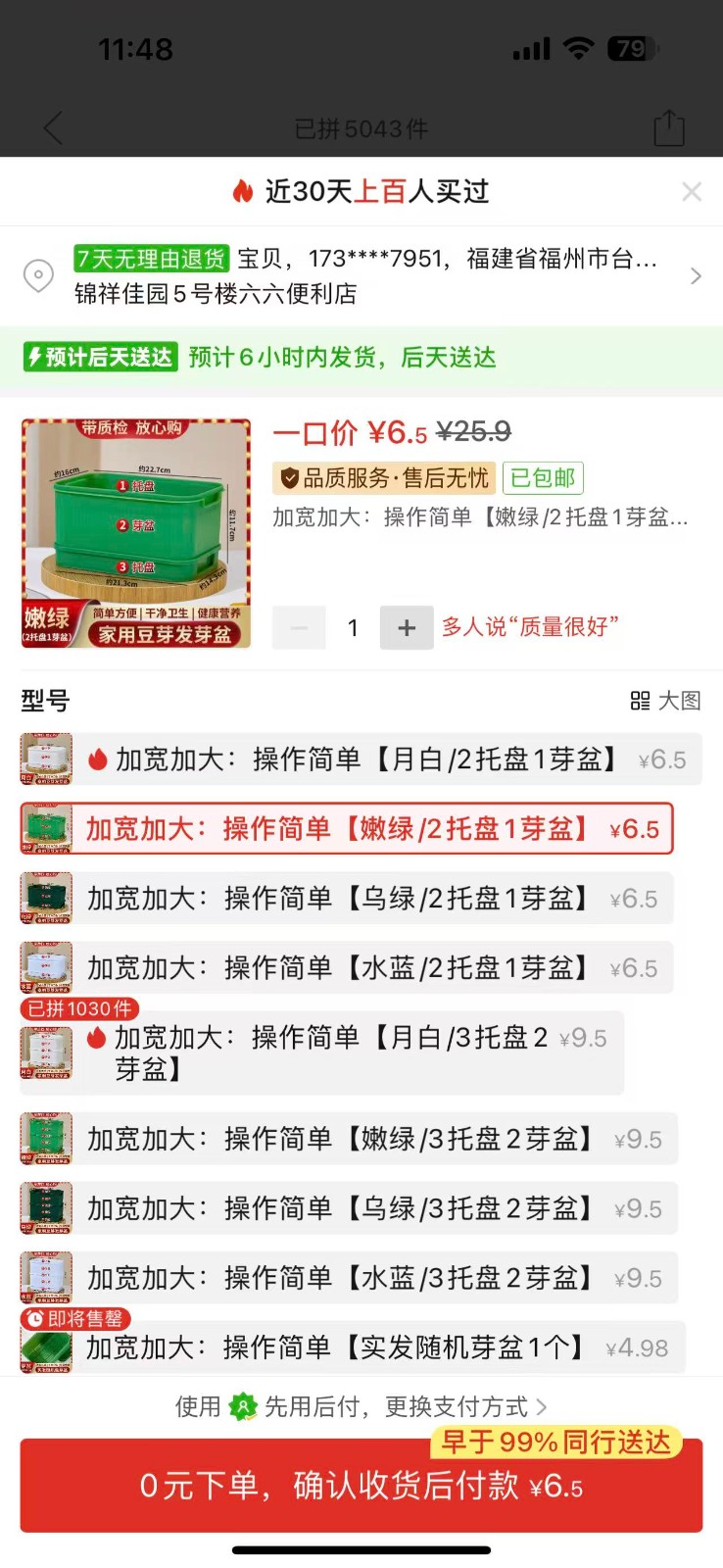 ①皮蛋粉3包+②家用绿豆盆1入组2托盘1芽盆 绿色的