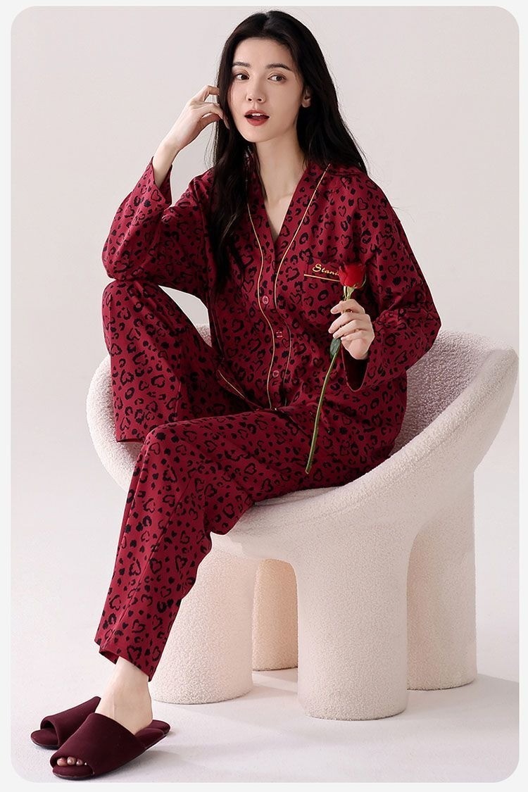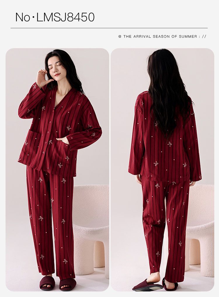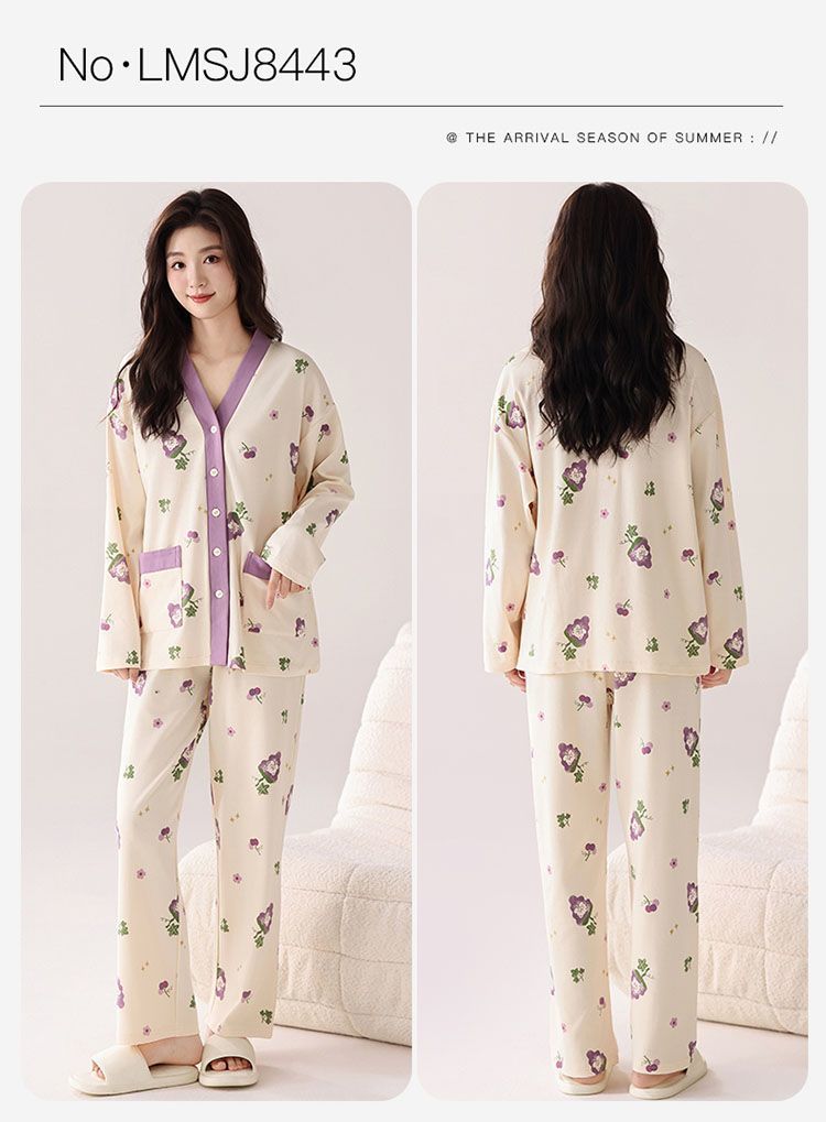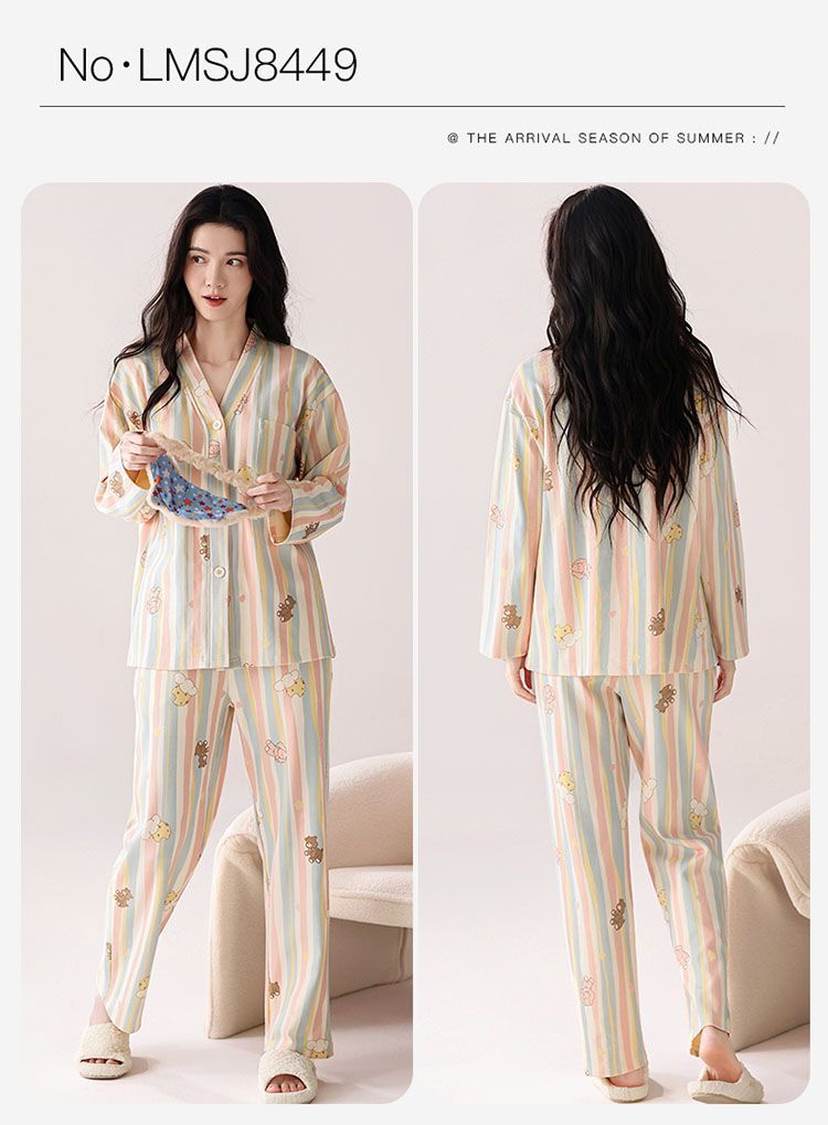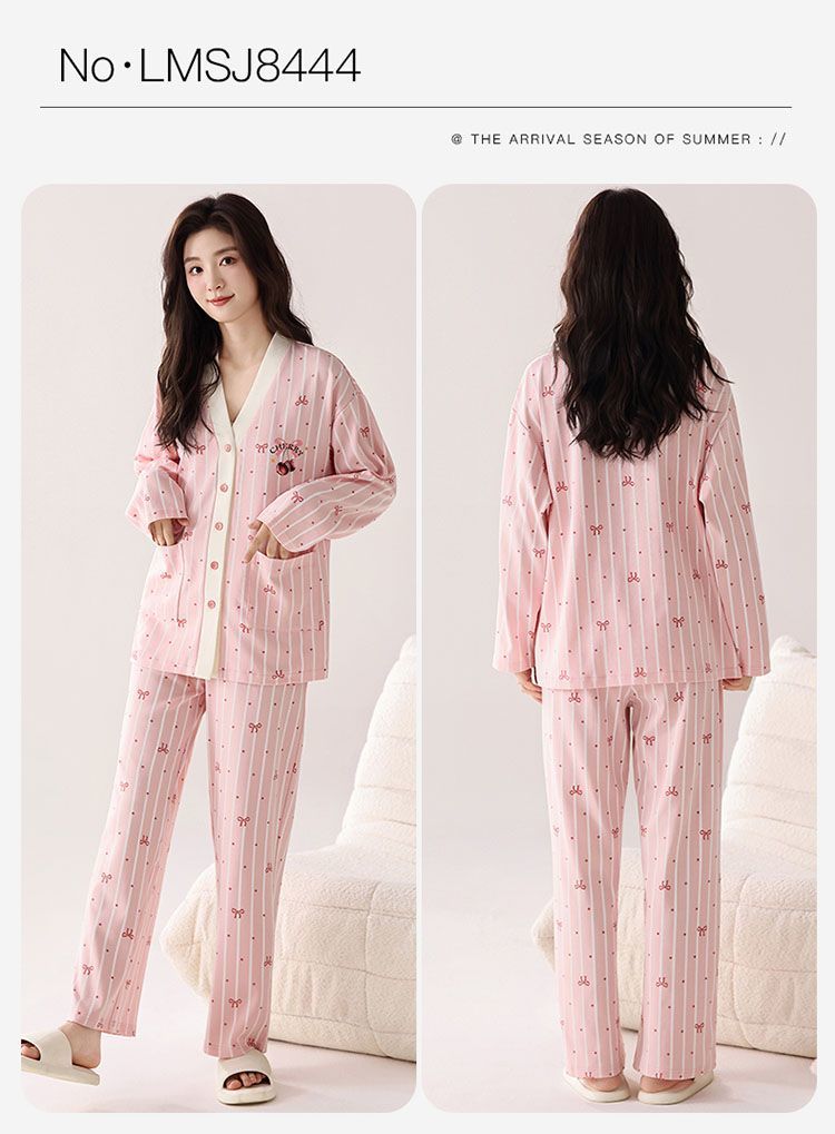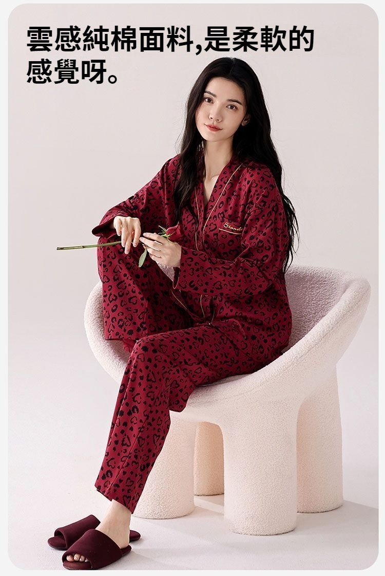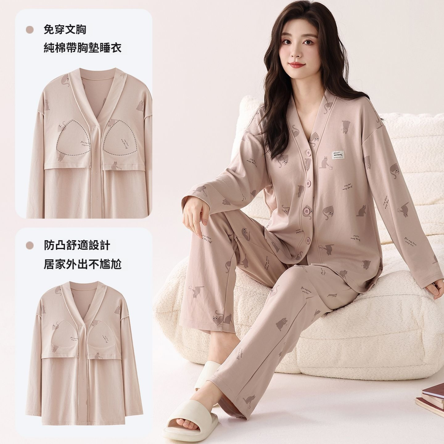 女款春秋季睡衣【純棉帶胸墊長袖加大碼】可外穿高級感家居服