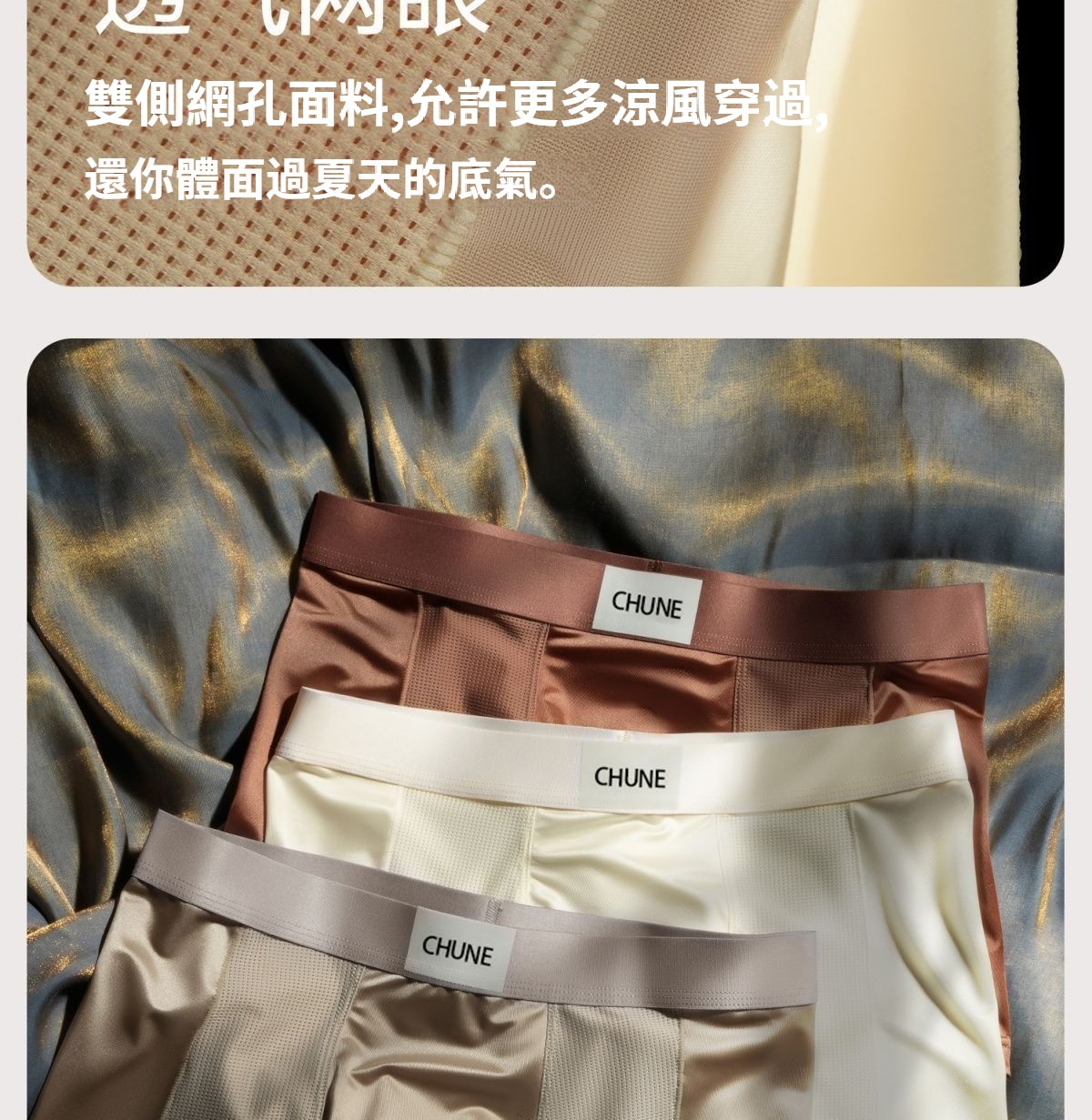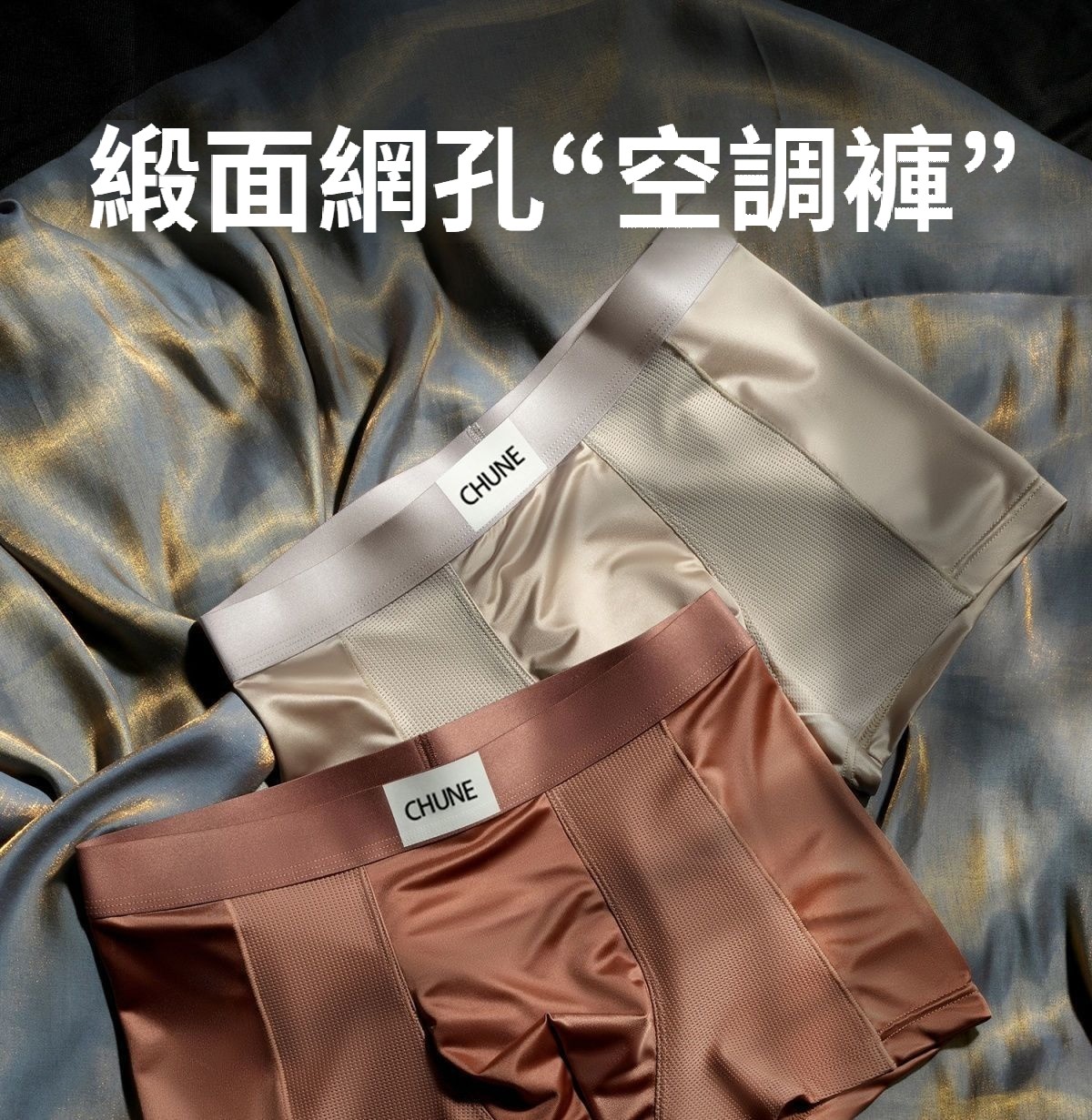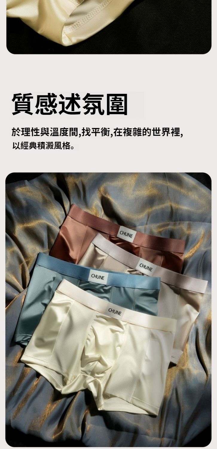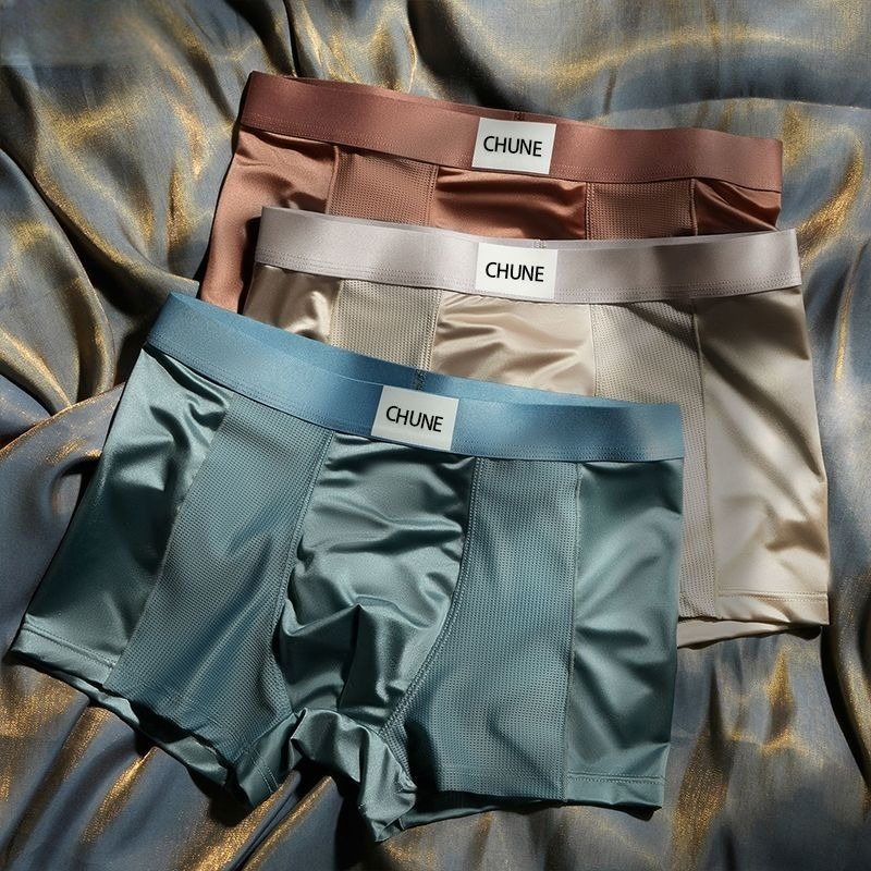 第 1 件 : 輕奢緞面男士內褲男冰絲透氣四角抑菌網眼高級夏季平角褲頭男