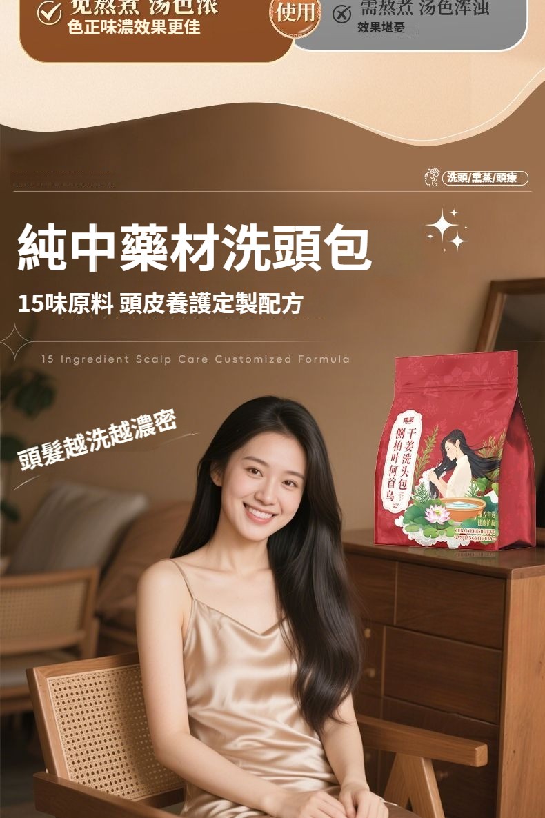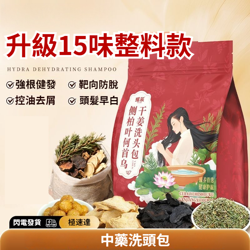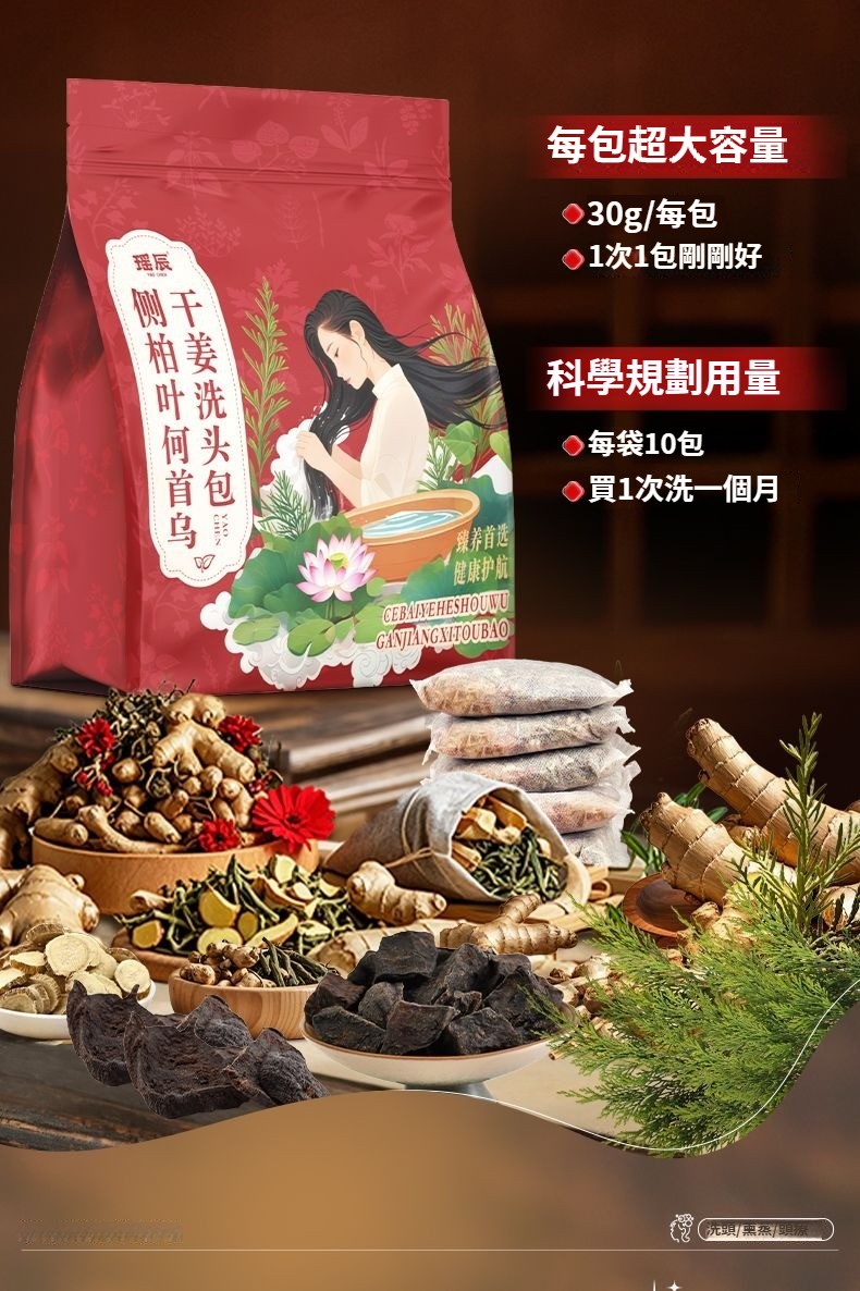 艾草側柏葉何首烏中藥材洗頭包生姜洗發水產后月子養護發頭療湯包 QAR 990