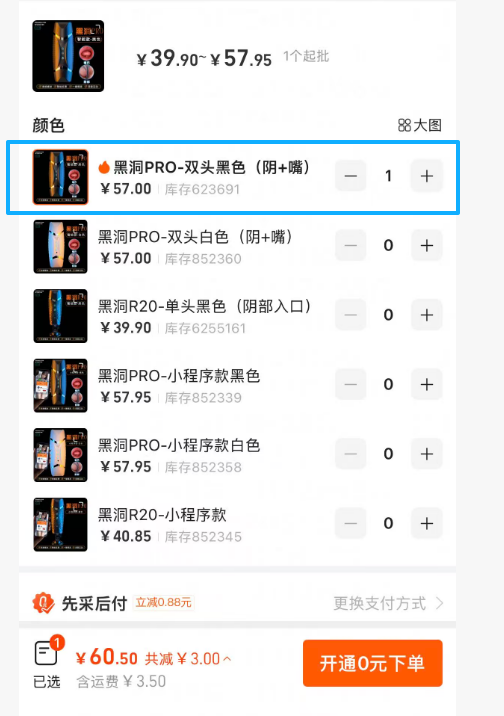 ②飛機杯 1個【黑洞PRO-雙頭黑(陰+嘴)】