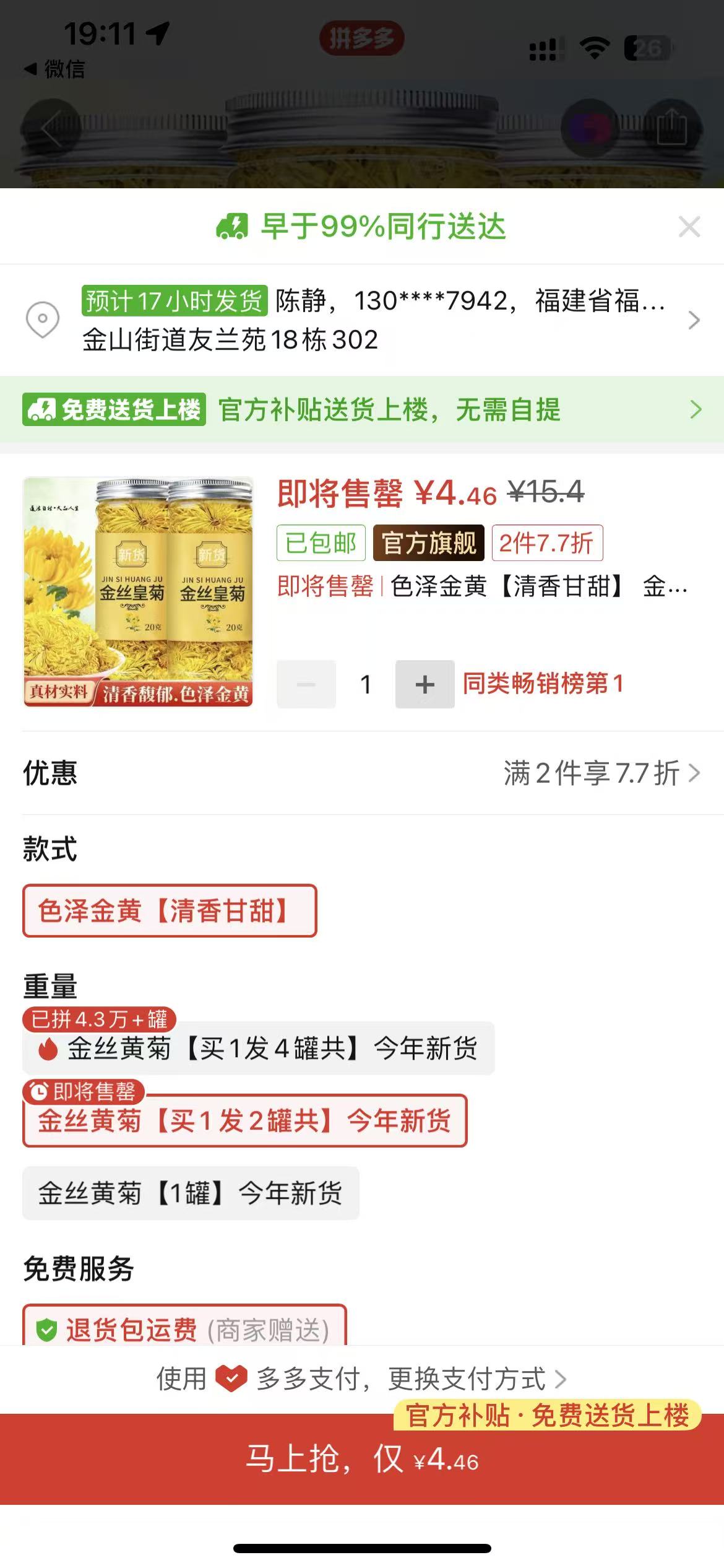 - 張** 搶購成功 4分鐘前