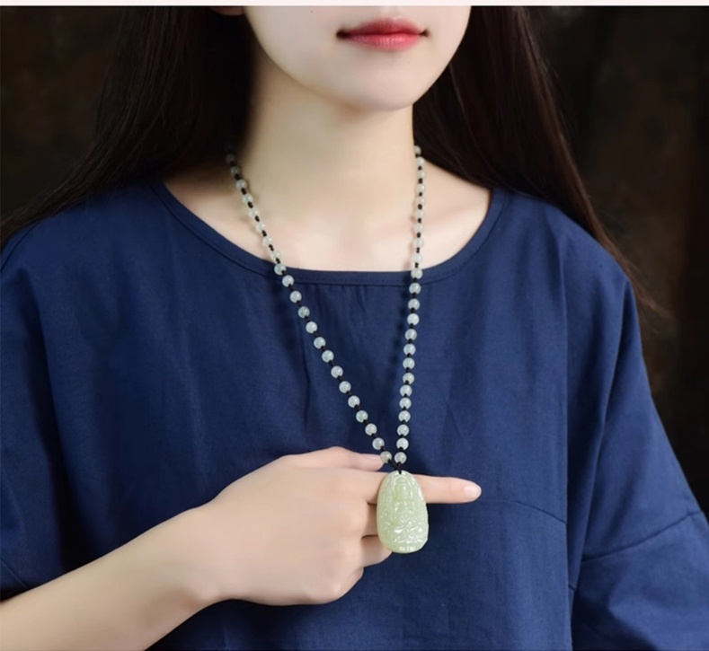 第 1 件 : 天然白玉十二生肖本命佛吊墜守護神男女士項鍊觀音菩薩禮物