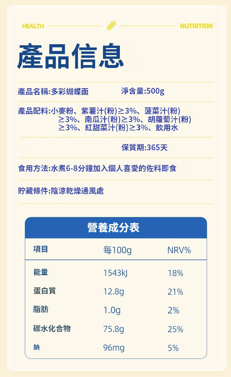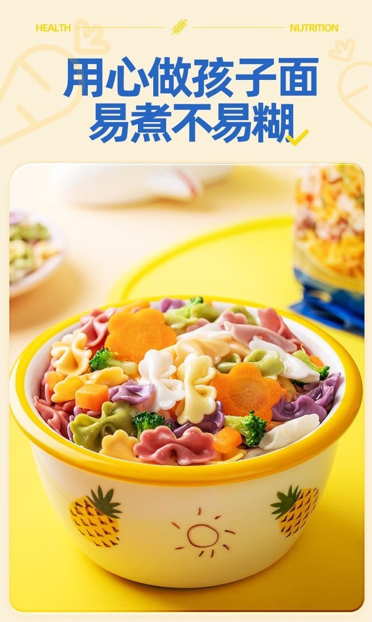 0添加劑多彩蝴蝶面5種果蔬面兒童營養蝴蝶面條早餐五彩掛面