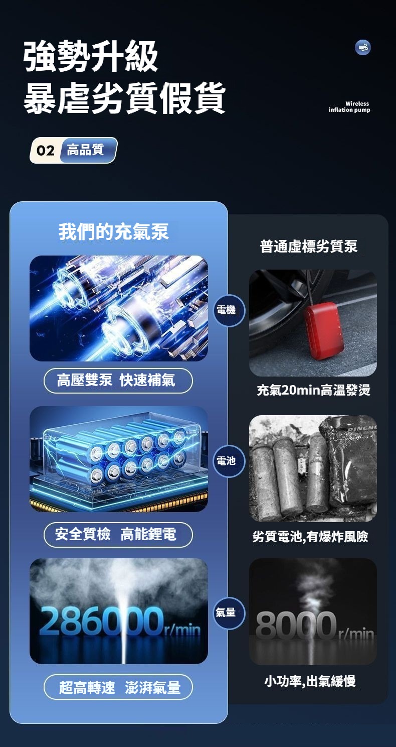 【車載充氣泵【無線充氣+充電線+彩盒】兩組1398