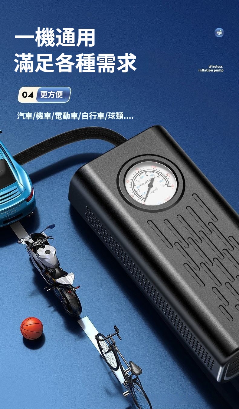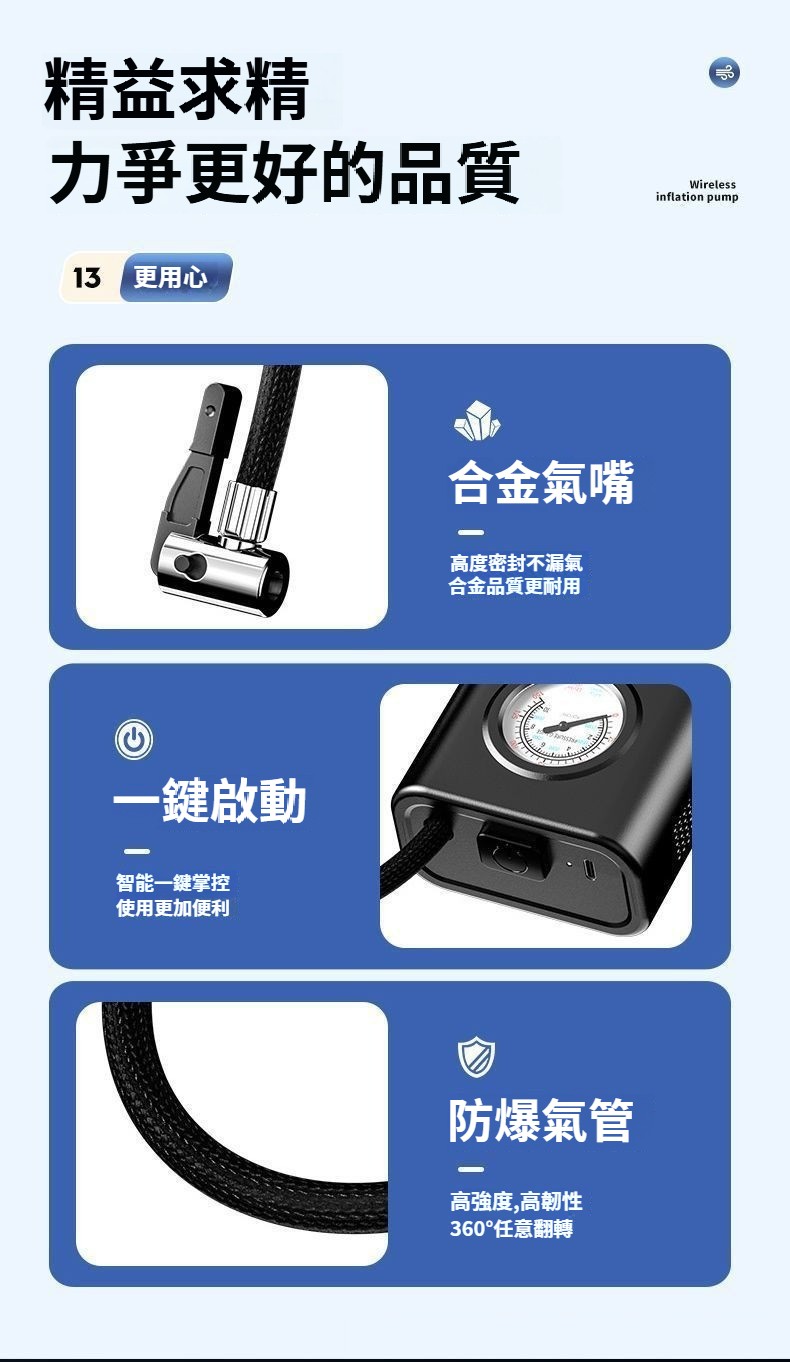 【車載充氣泵【無線充氣+充電線+彩盒】一組1050