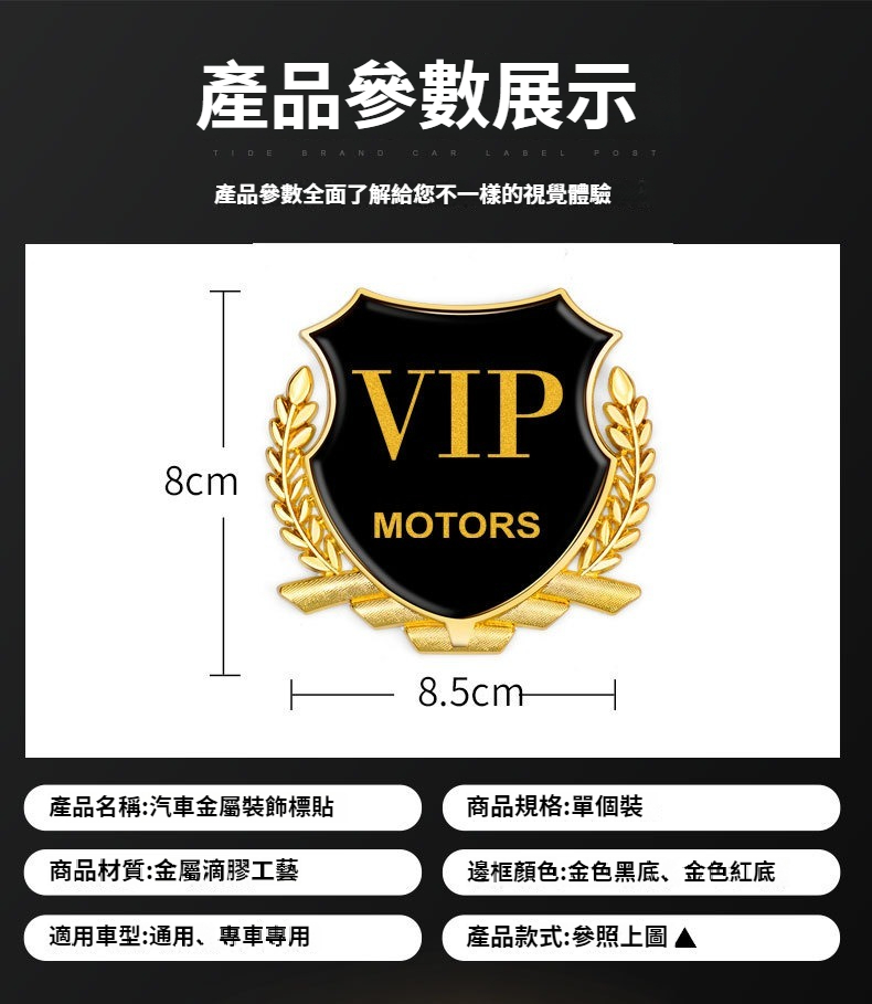 第 1 件 : 汽車大號麥穗金屬貼側標VIP金屬貼3D立體個性創意貼紙改裝通用品