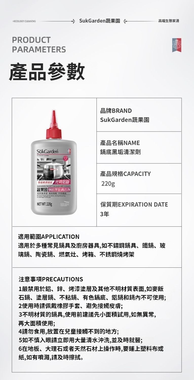 鍋底清潔劑清潔不鏽鋼鍋鐵鍋鐵盆廚房去油污強力去黑垢油漬