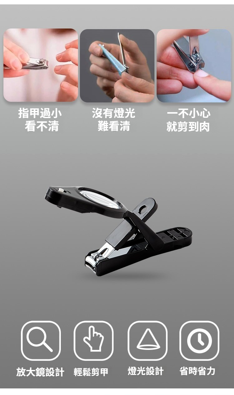 老年人指甲剪子鉗子-帶照明燈-暗黑色