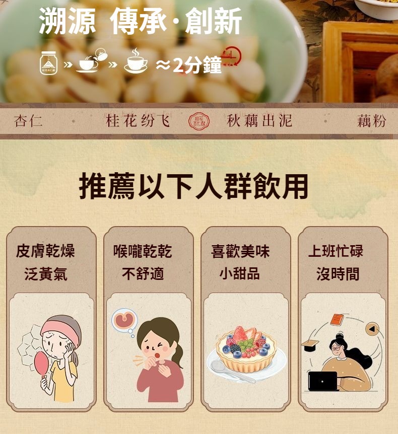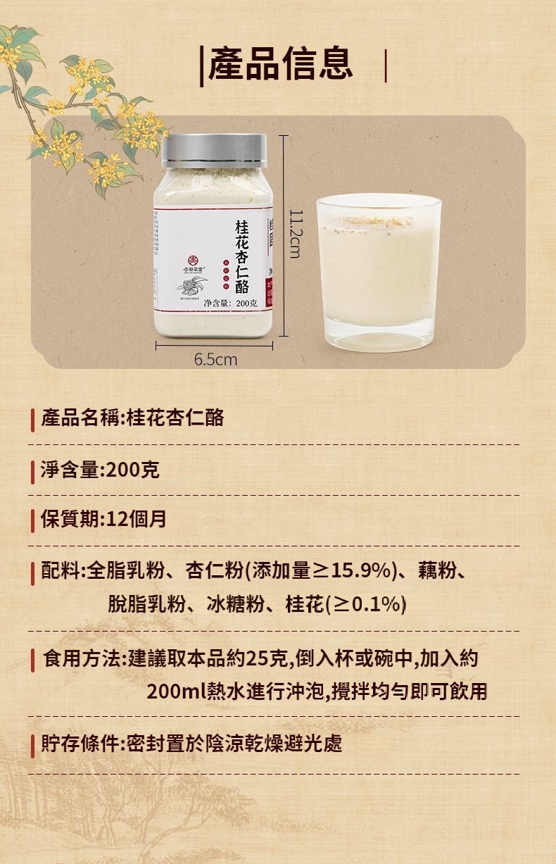 黃黑皮+熬夜臉的救星! 【宮廷桂花杏仁酪】喝出冷白牛奶肌,雙重透亮因數:杏仁VB₁₇褪黃+桂花黃酮抗氧|14天養出素顏發光感|古代娘娘們都愛的宮廷美食,美顏養膚美白,立秋後喝效果翻倍 NT$ 890