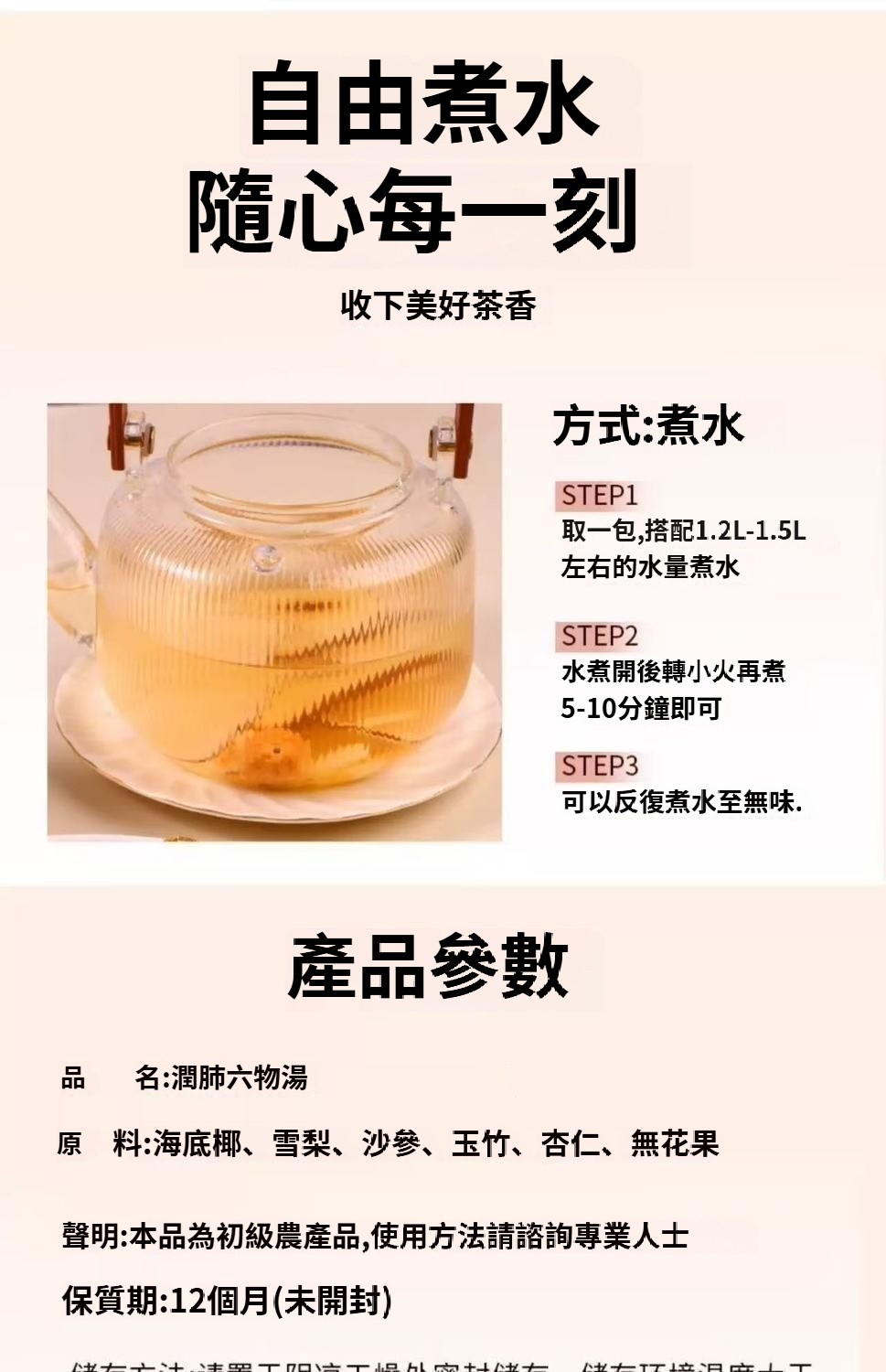 潤肺六物飲、潤肺飲秋季潤燥水生津飲玉竹無花果雪梨海底椰杏仁組合裝 NT$ 999