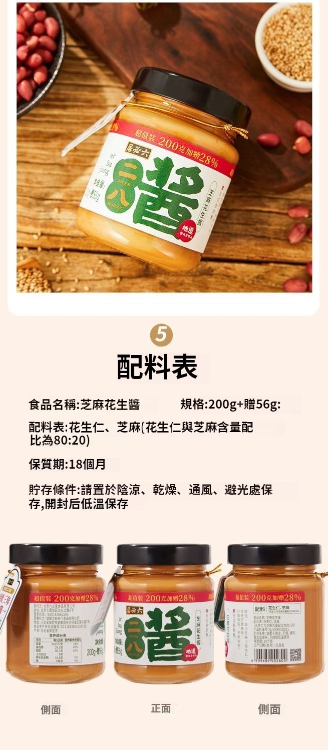 芝麻花生256g醬二八醬芝麻醬花生醬火鍋麻醬拌麵醬火鍋蘸料