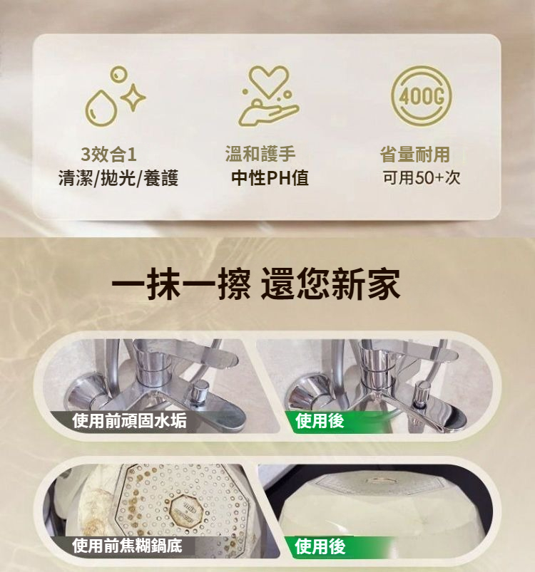 頑固污渍,一擦即白!一抹一擦,還您新家!【植物配方,不傷器物,不傷手,嬰寵友好】 99%天然配方,強力去除浴室水垢,玻璃水漬~ NT$ 899