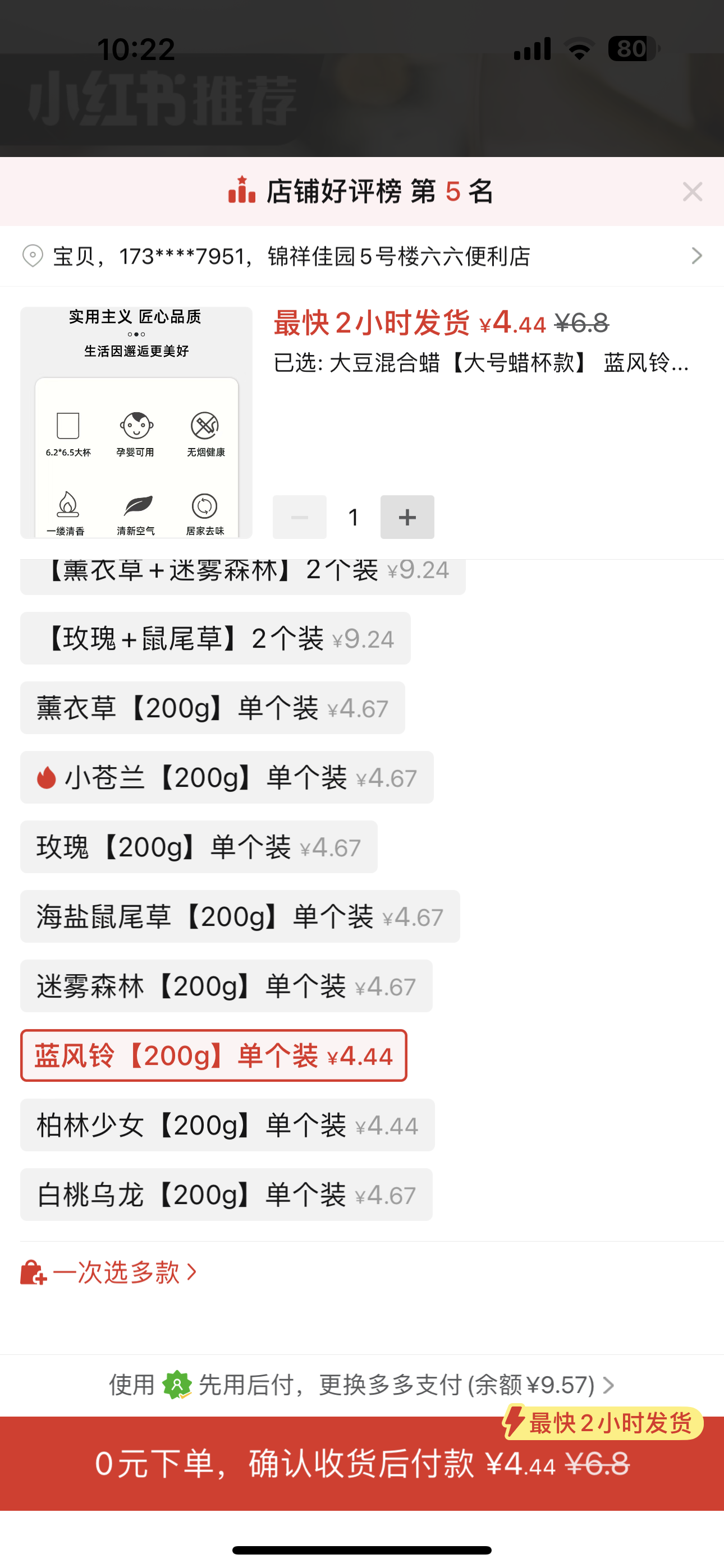 ①超級綠鑽10粒+②香薰蠟燭玫瑰味1个+③香薰蠟燭藍風鈴味1个