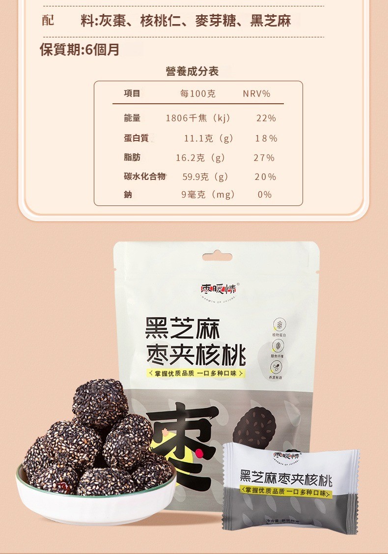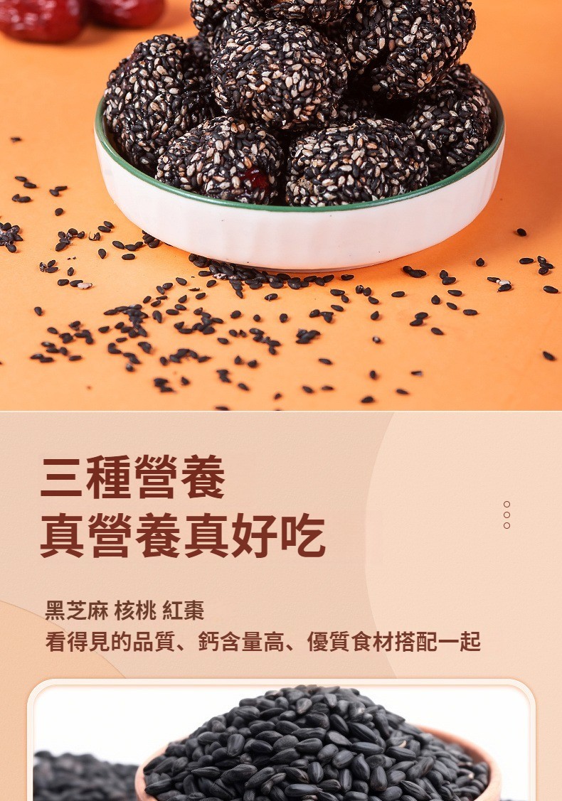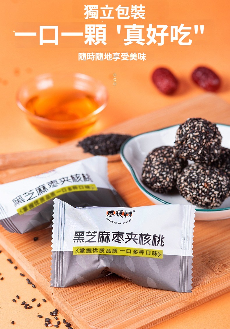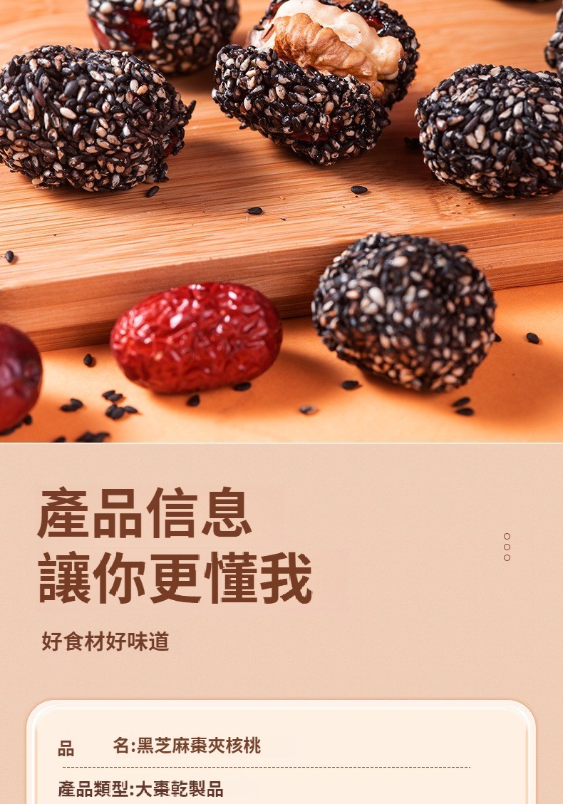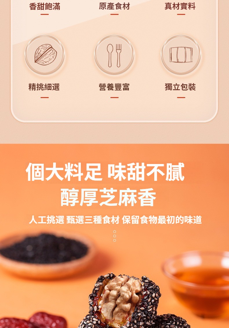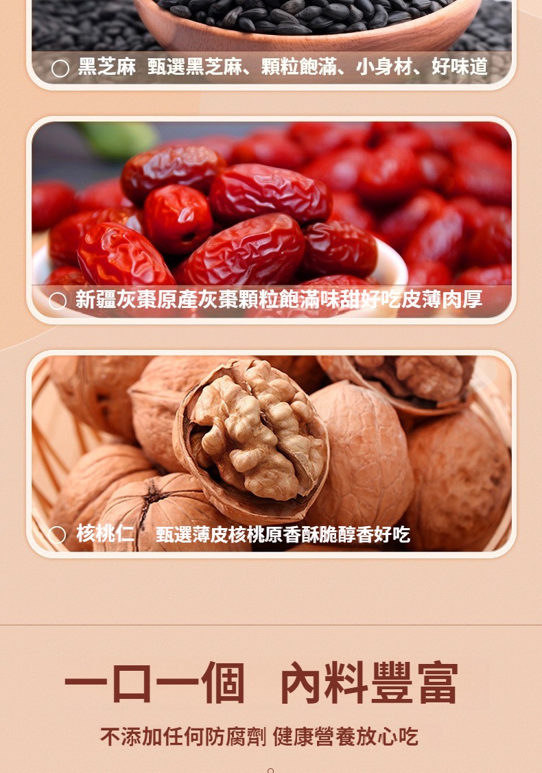 【超級補!!一口多種口味,黑芝麻、核桃、紅棗, 人工挑選,甄選三種食材,保留食物最初的味道】芝麻紅棗夾核桃,個大料足,味甜不膩,醇厚芝麻香,,无负担,配比均衡,量多料足,一口满足 NT$ 899