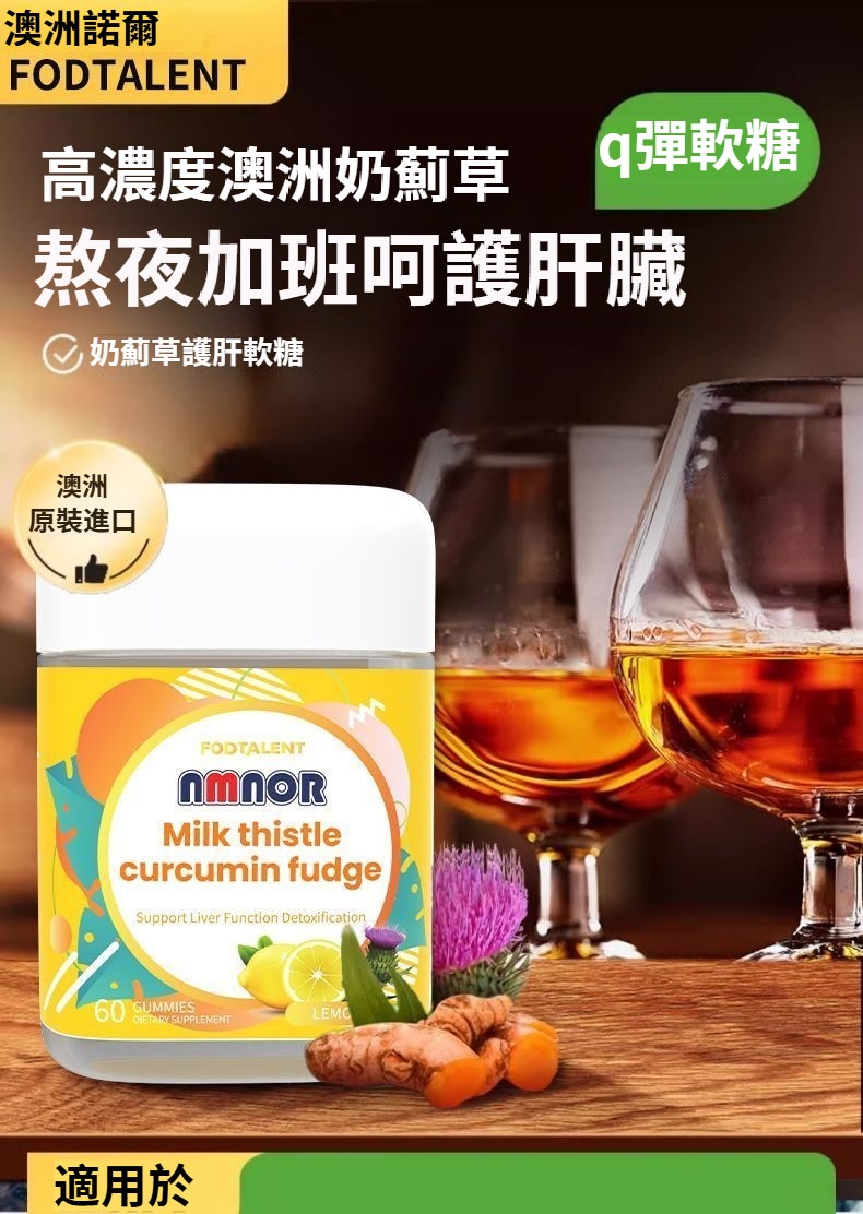 澳洲進口水飛薊籽薑黃素軟糖呵護長期飲酒加班熬夜斏髒喝酒常備