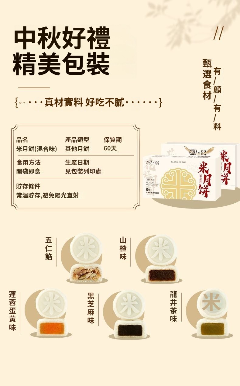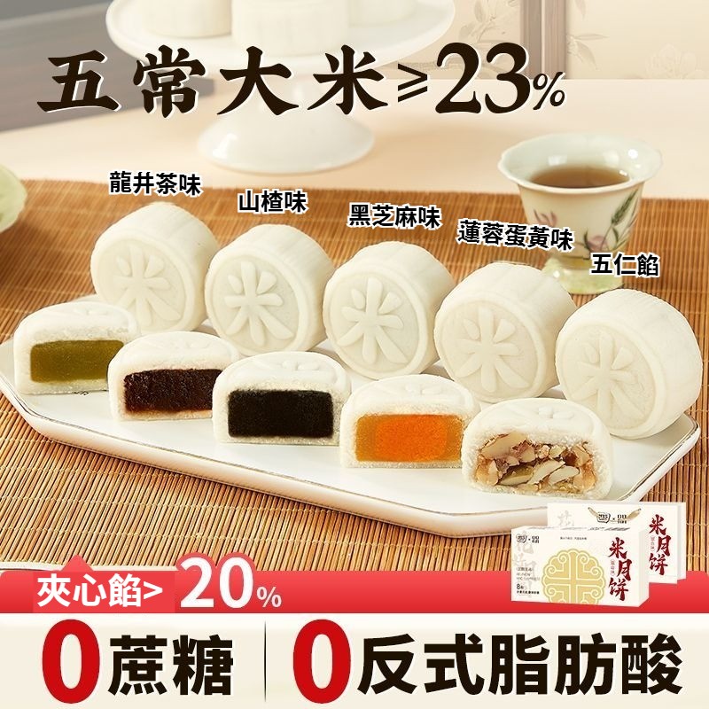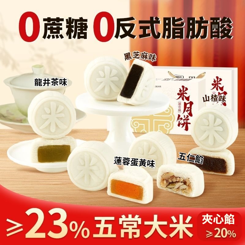 五常米月餅多種口味0蔗糖月餅黑芝麻口味中秋月餅禮盒裝送禮