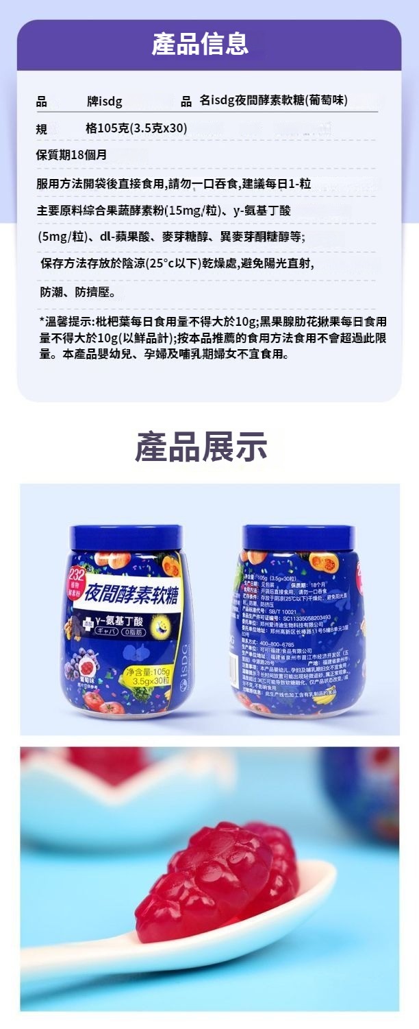 ISDG夜間酵素軟糖添加232綜合植物果蔬酵素粉GABA0脂肪 NT$ 1099