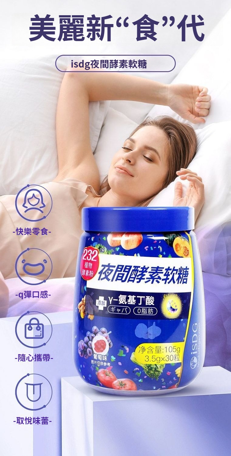 ISDG夜間酵素軟糖添加232綜合植物果蔬酵素粉GABA0脂肪
