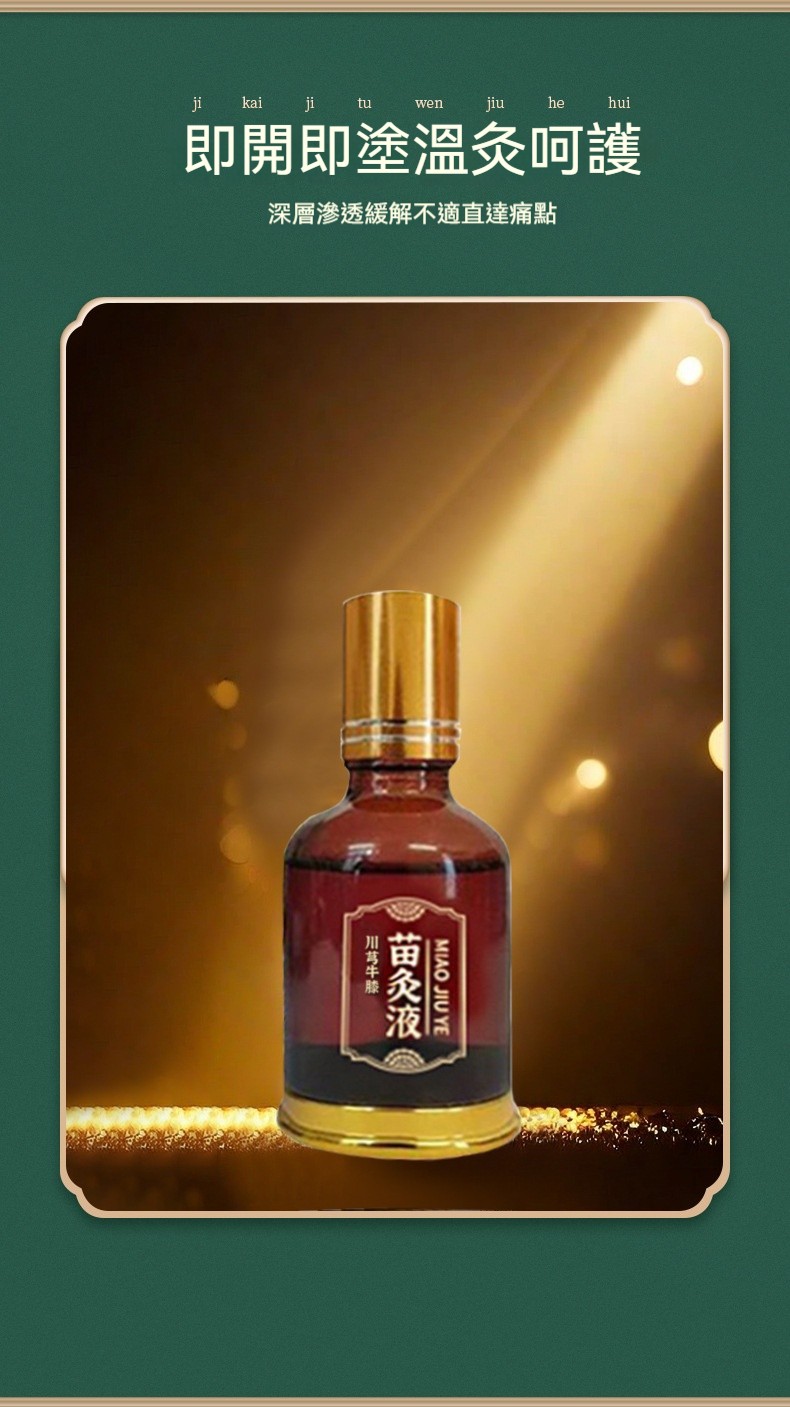 衛福部核可【苗族國藥世家正品保證川芎牛膝苗灸液】筋骨酸痛貼布無效?【苗家秘方灸液】一抹速熱滲透,比艾灸強3倍卻不燙傷!腰酸、腿痛、關節不適,一抹見效的苗家秘方!深層滲透‧快速緩解肌肉僵硬_活血化瘀‧疏通經絡不阻塞_溫熱療效‧放鬆緊繃的腰腿肩膀