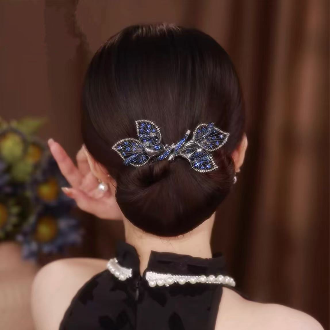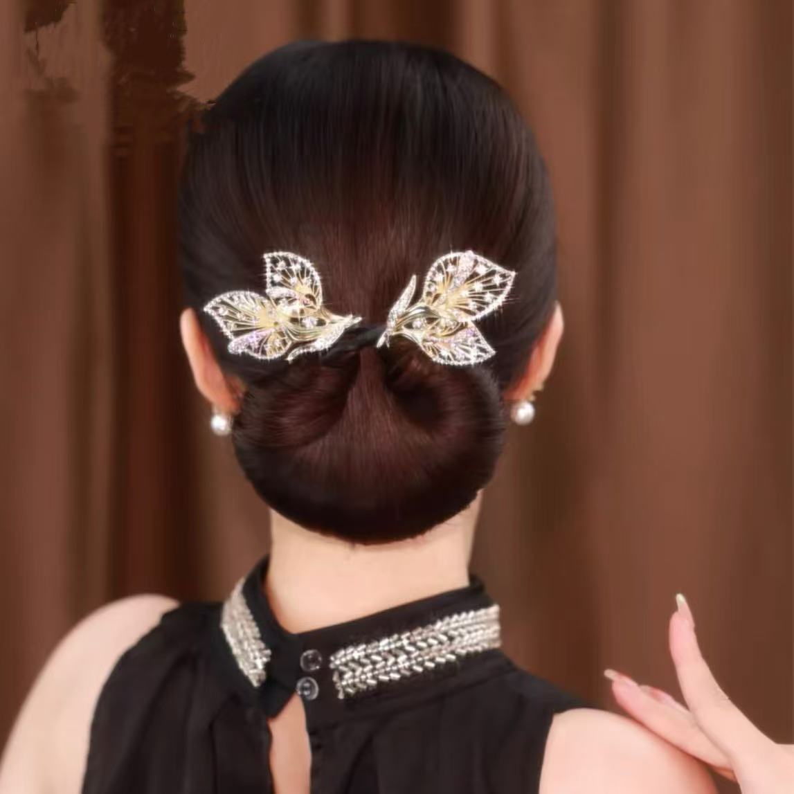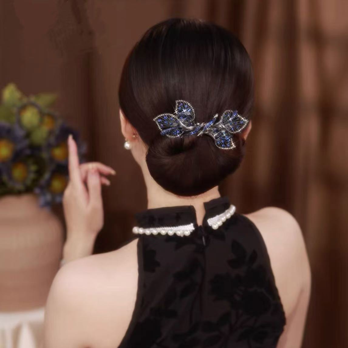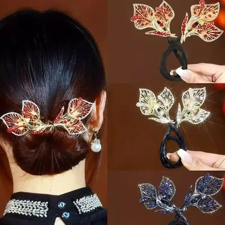 新款頭飾高檔飛葉盤發器時尚后腦勺盤發器優雅丸子頭懶人發飾