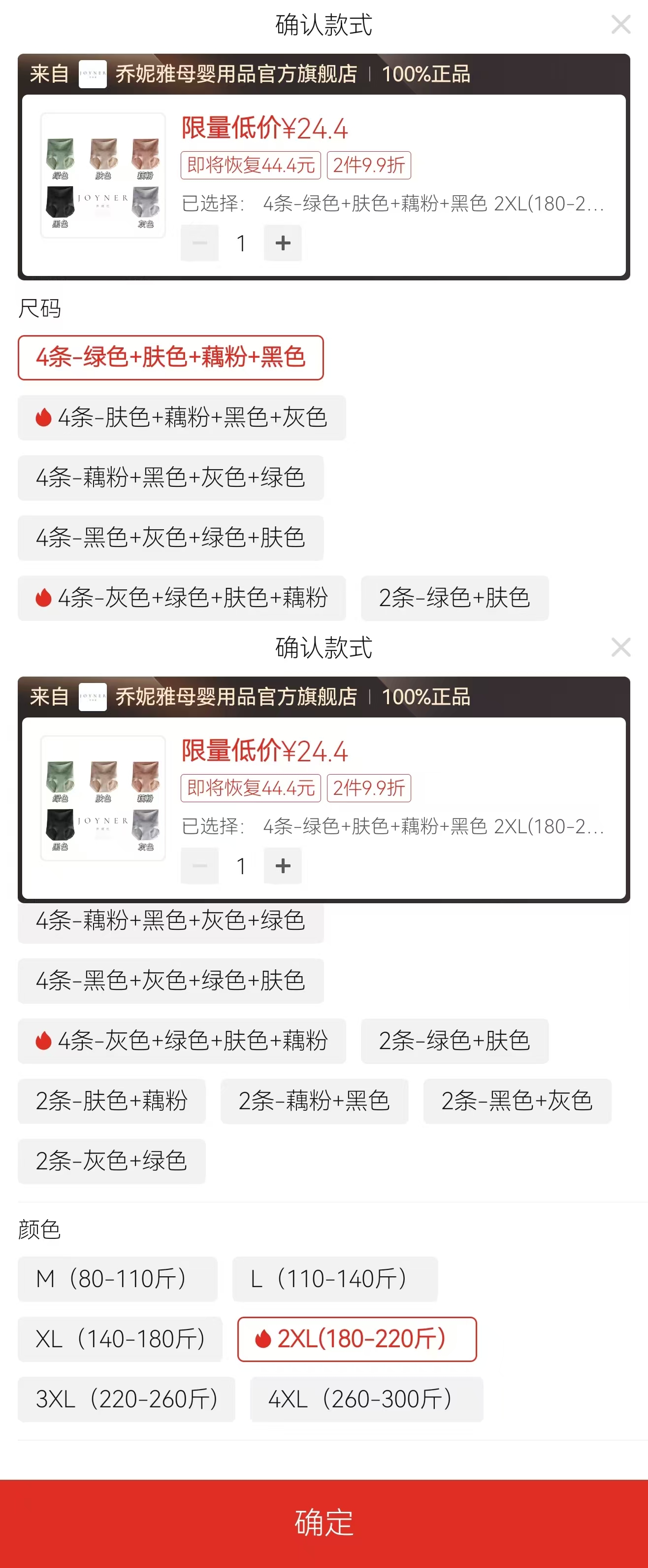 ②内褲4件(綠色+膚色+藕粉+黑色)2XL(180-220斤)24.4元 https://mobile.yangkeduo.com/goods2.html?ps=XYrjlNqtCp