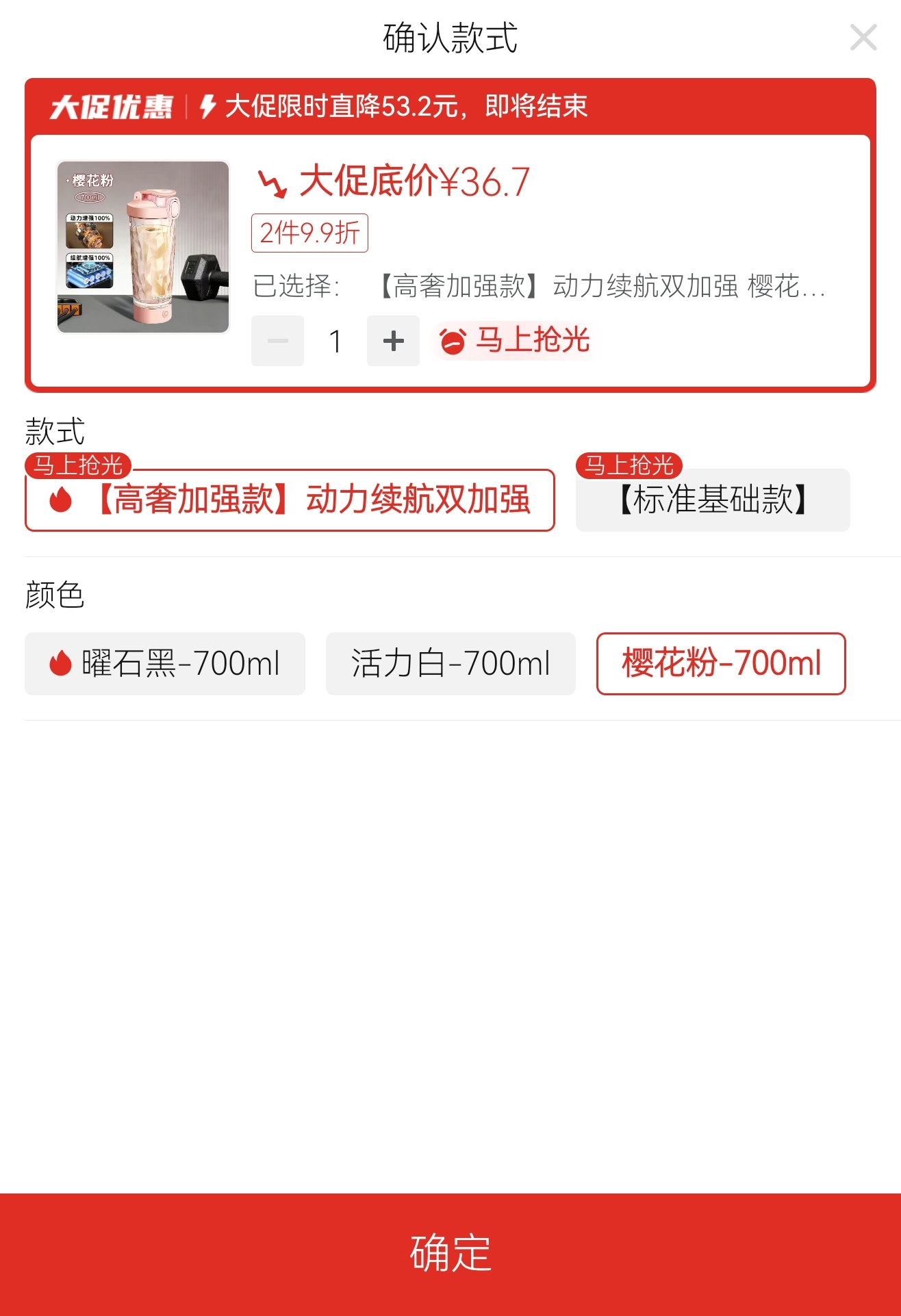 ③自動攪拌杯 1个(高奢加强款 動力續航雙加强)(櫻花粉-700ml)36.7元 https://mobile.yangkeduo.com/goods.html?ps=wfb4iprjoi