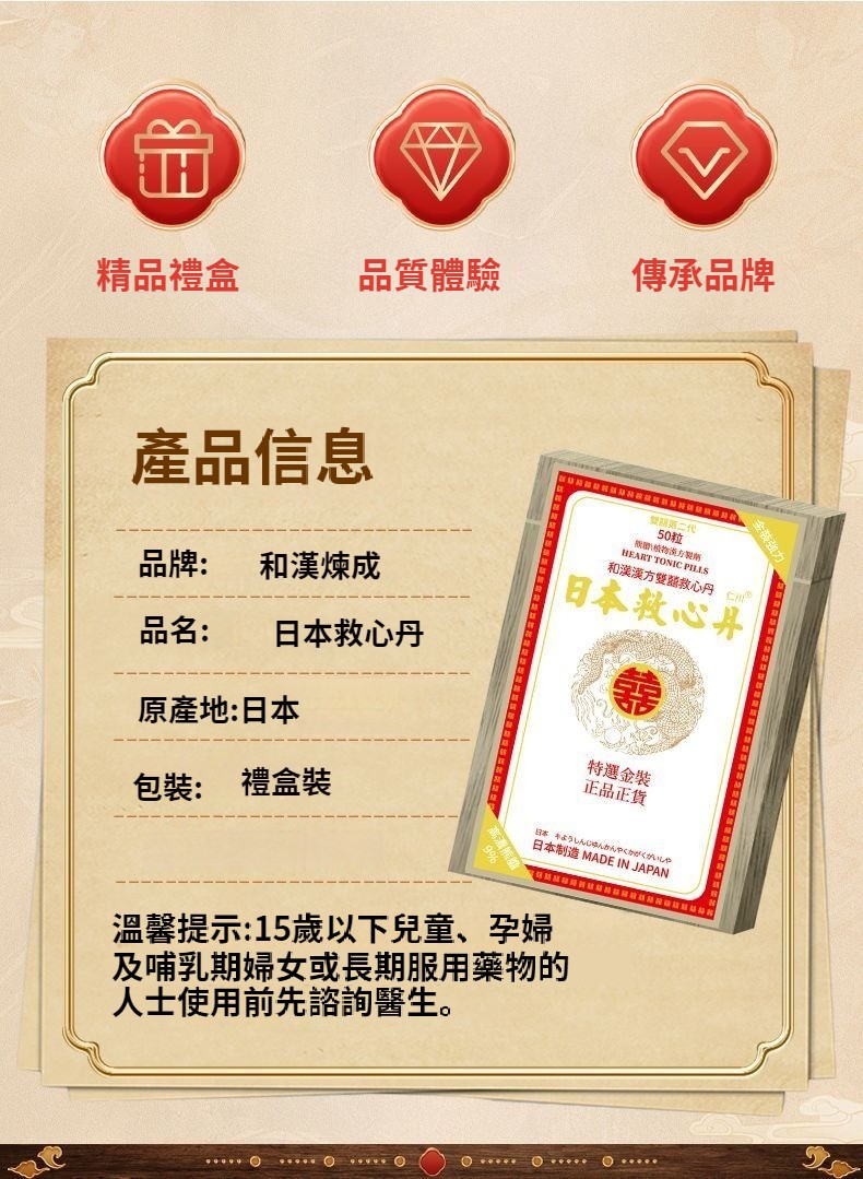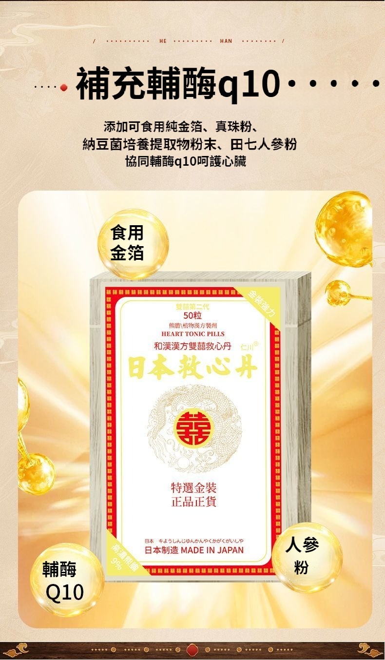 海外直採!【日本和漢漢方雙喜救心丹】比輔酶Q10更有用的,家中必備藥!不僅是一粒藥,更是一份傳承百年的安心承諾。專為守護心臟健康,它致力于快速緩解突發的心悸、胸悶與氣短,強心補氣;同時兼顧長效安神,幫助舒緩焦慮,穩固健康根基。遵循正統漢方,結合現代精制工藝,品質純粹可見。適合尋求心臟日常養護的中老年人及壓力過大的亞健康人群。給予家人與自己的守護。 NT$ 1380